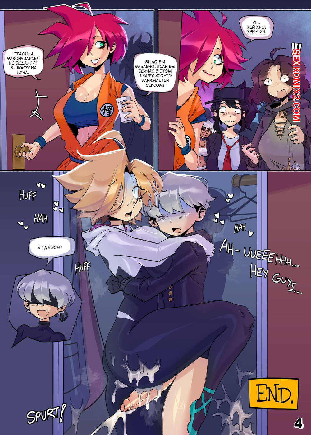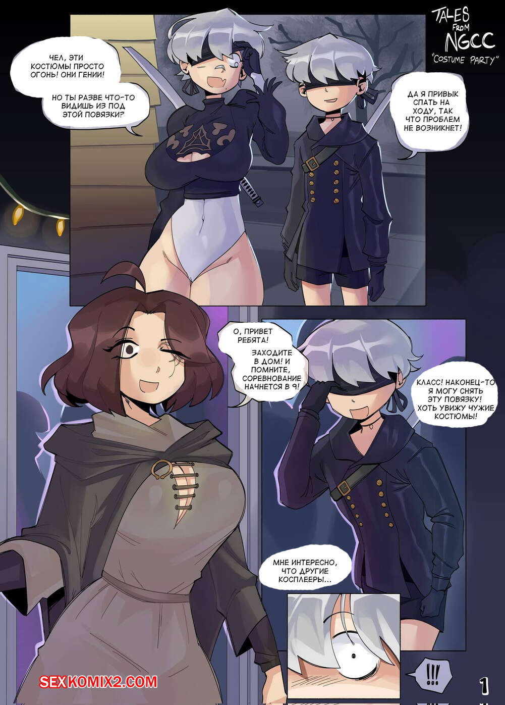 Порно комикс Сказки из NGCC. Костюмированная вечеринка. Tales From NGCC. Costume Party. Anor3xiA Парень пришел на костюмированную вечеринку со своей подругой, где на него положила глаз сексуальная блондинка. Девушка позвала парня уединиться и отсосала большой хуй парня, после чего дала ему себя выебать и кончить в нее.