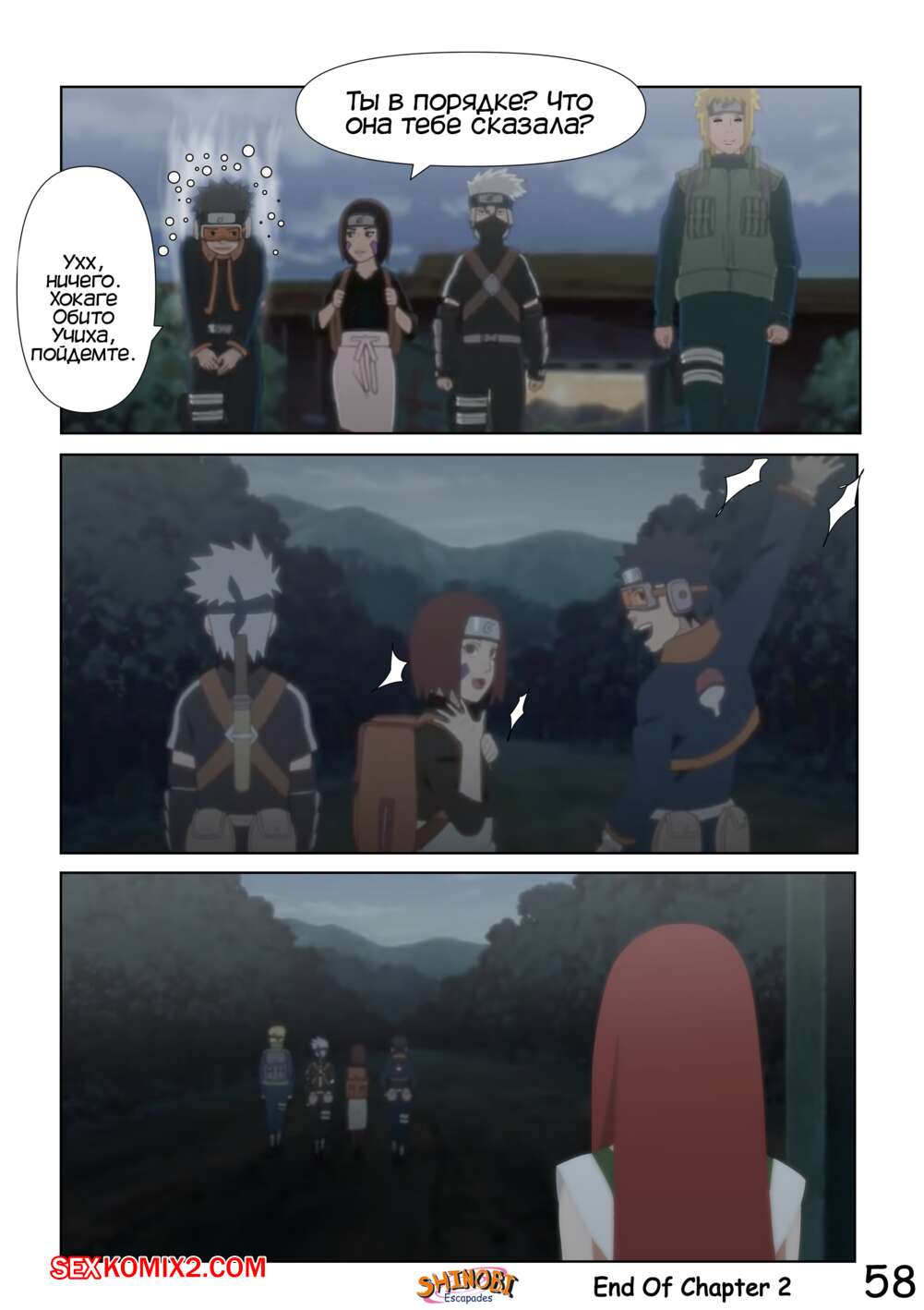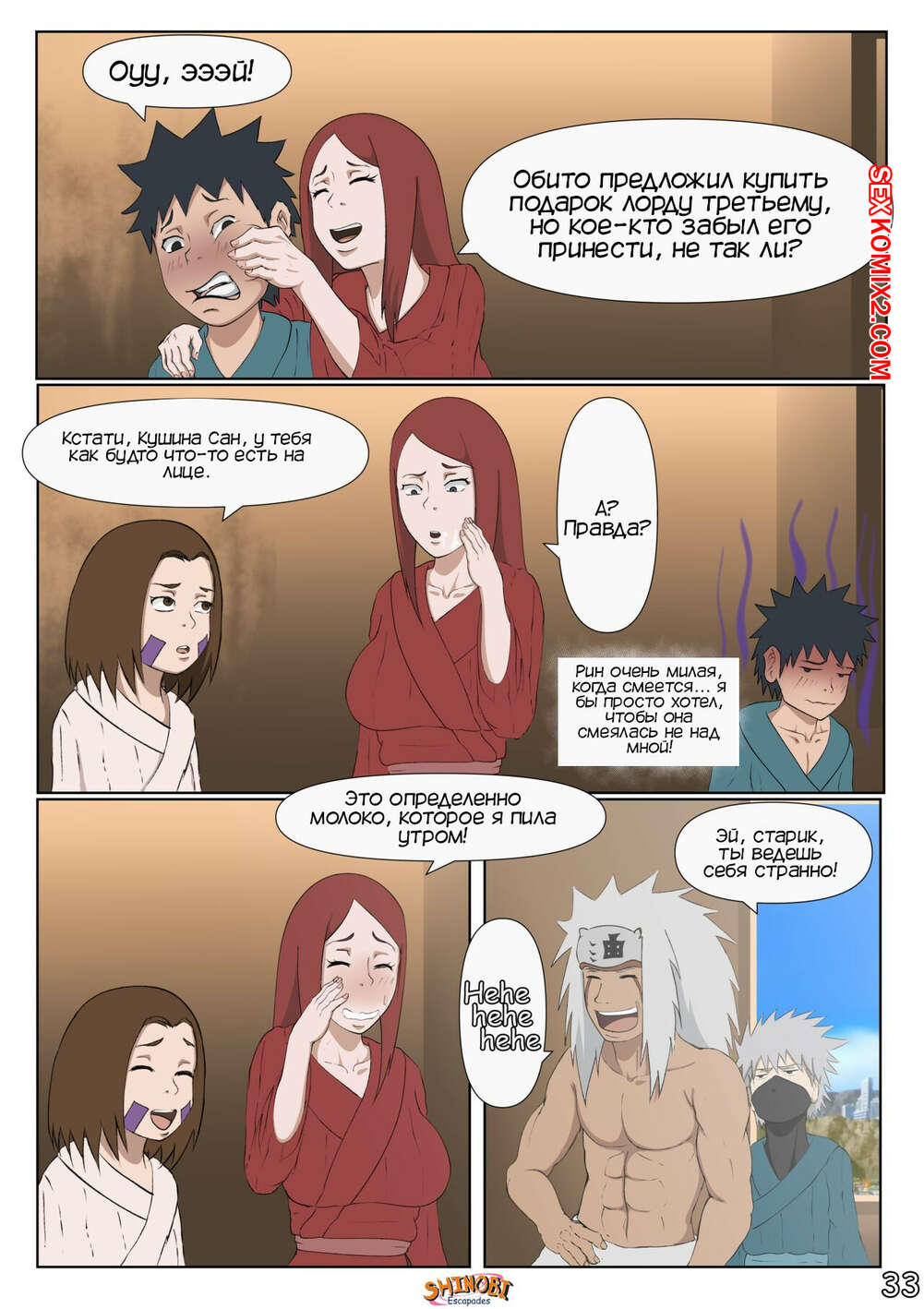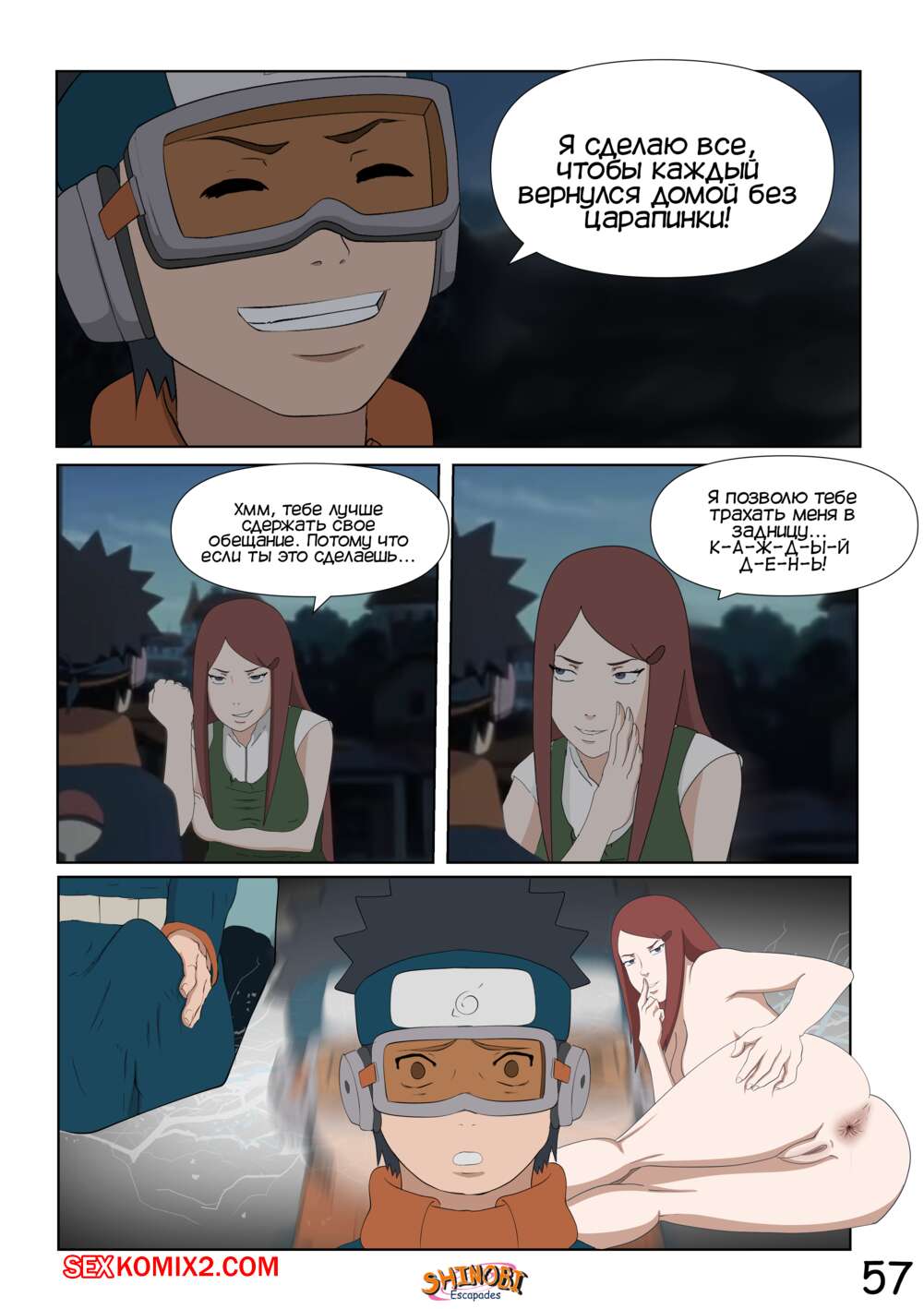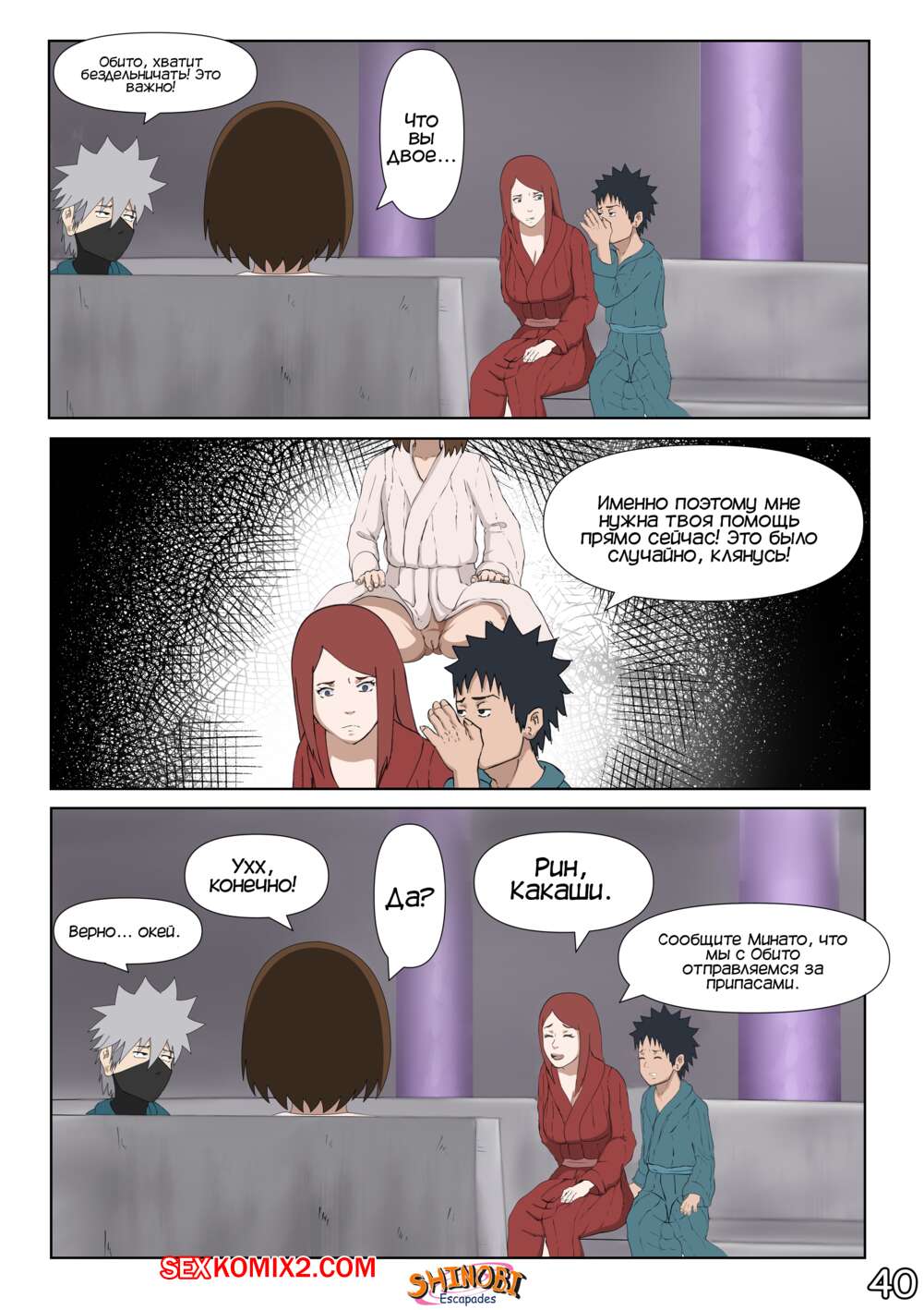 Порно комикс Наруто. Эскапады Шиноби. Часть 2 Обито пришел домой к Кушине и горячая милфа решила повеселиться с парнем. Она стала соблазнять и возбуждать парня, демонстрируя ему свое шикарное тело, желая ощутить большой хуй парня в себе.