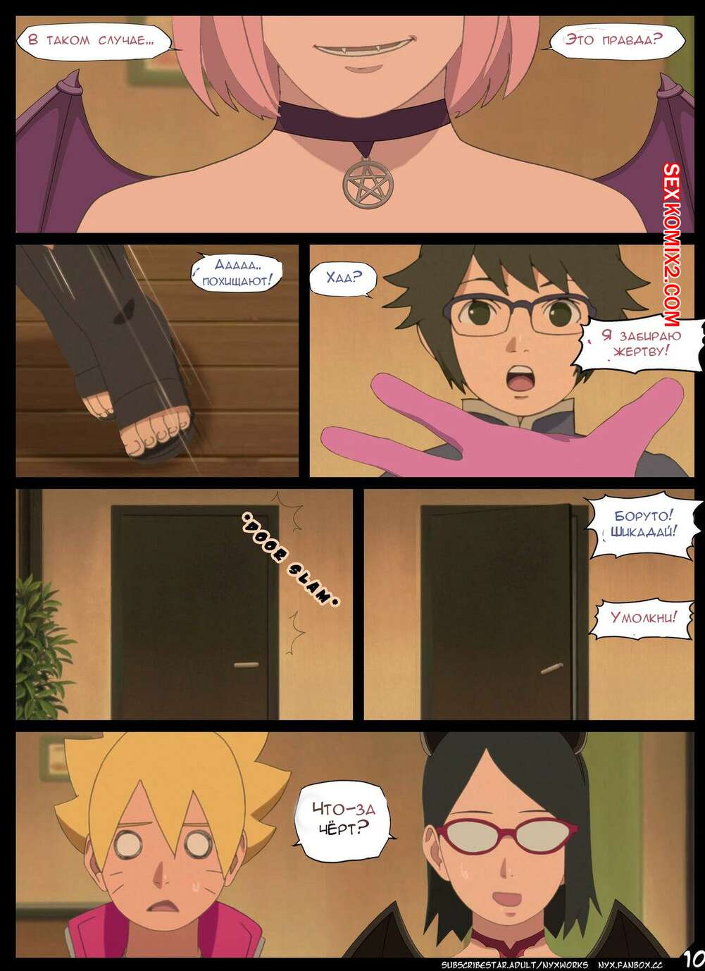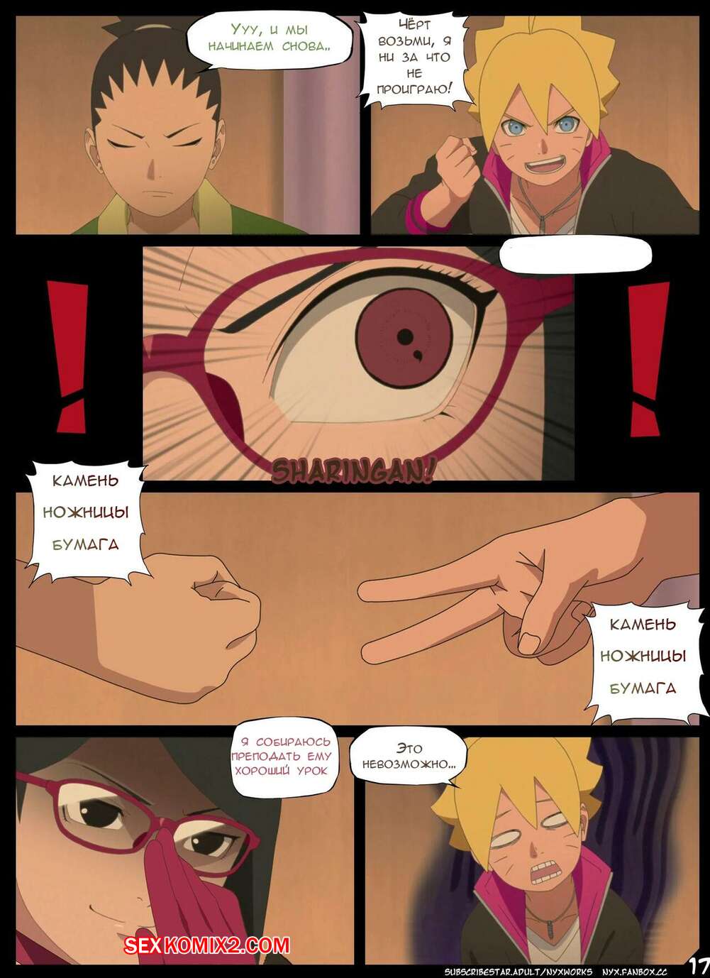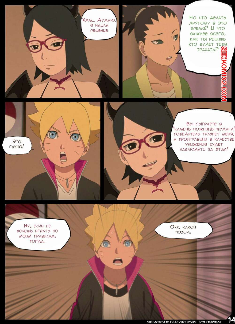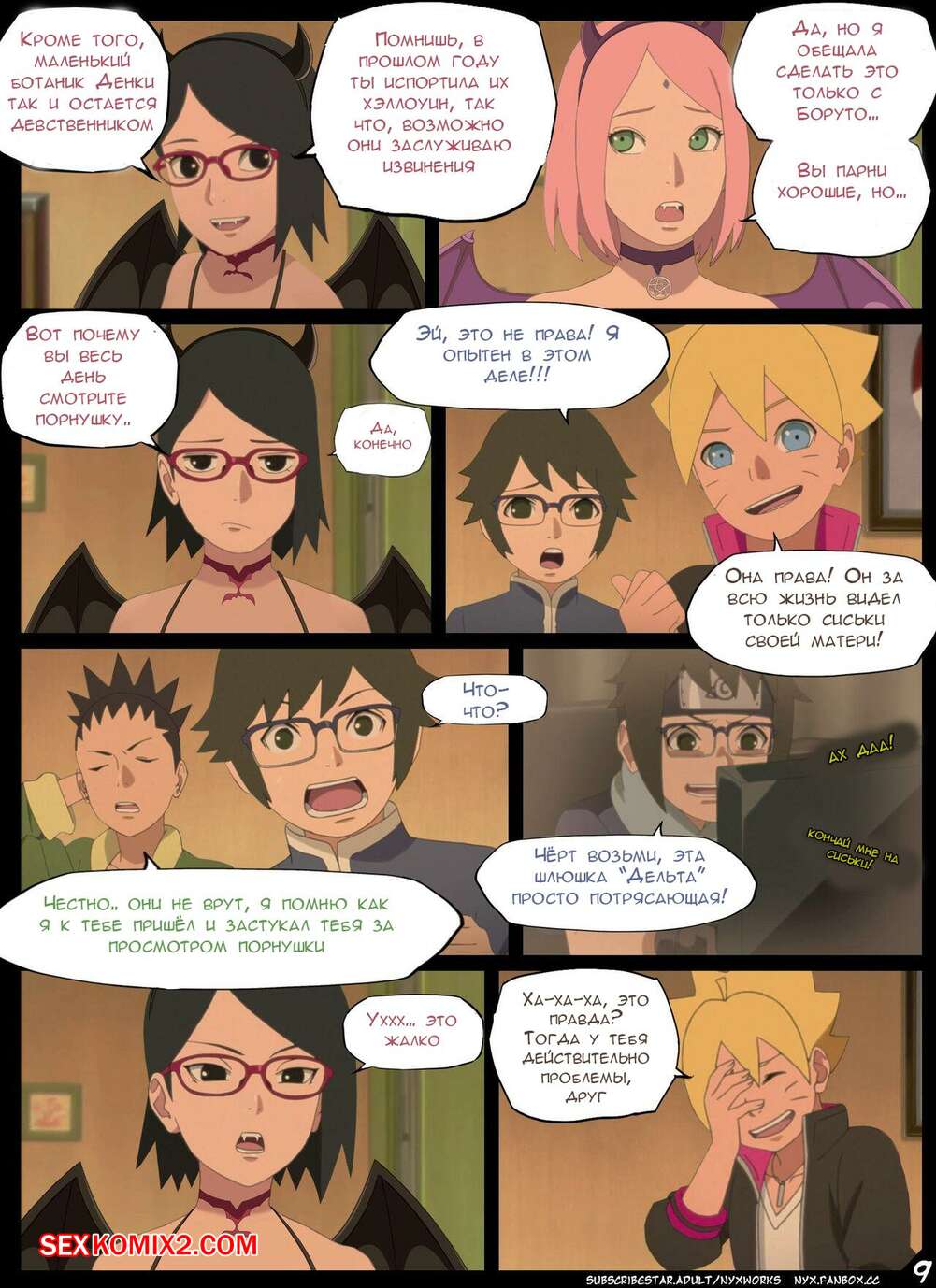 Порно комикс Наруто. Боруто. Ночь Красноглазого Суккуба. Nyx Сакура с Сарада стали одержимы сексом и хотят трахаться. Они пригласили к себе молодого парня и стали у него отсасывать, после чего дали ему себя хорошенько выебать.