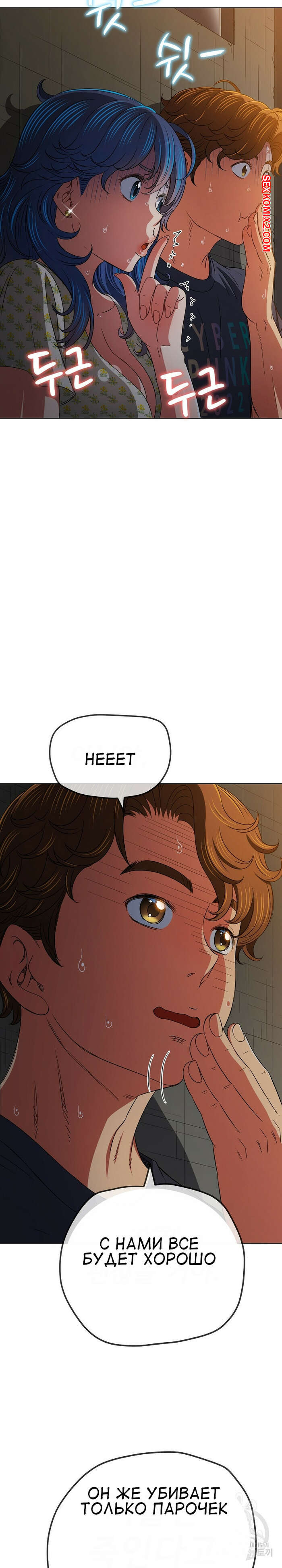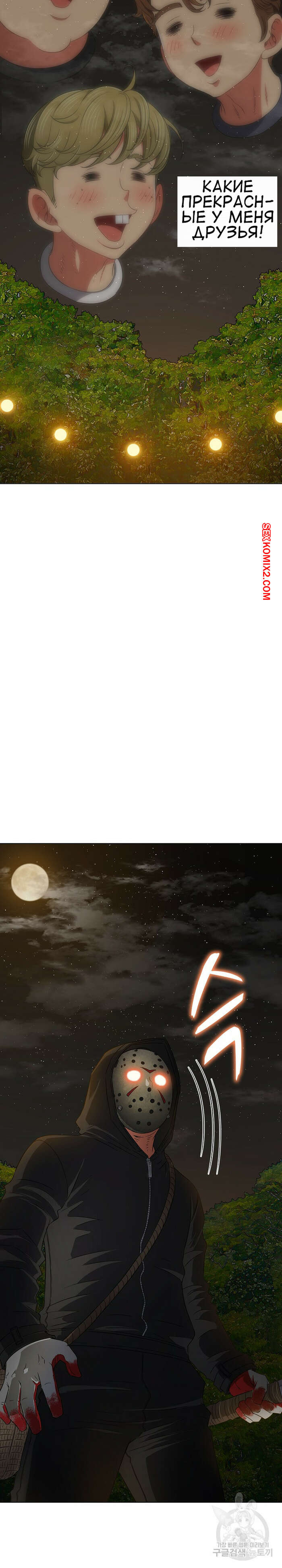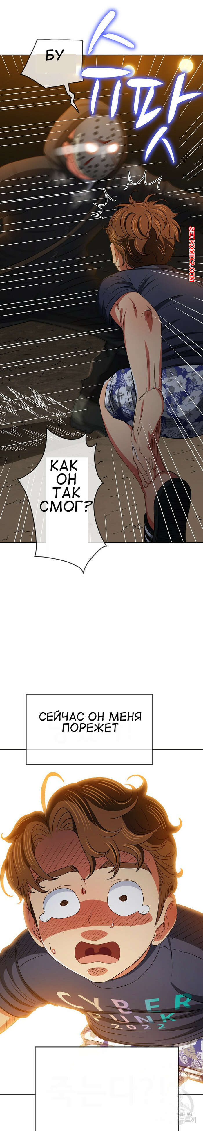 Порно комикс Изгой из старшей школы. Части 153. My High School Bully Парень с девушкой побежали в свой лагерь, чтобы спрятаться от маньяка. Парень сказал девушке прятаться, а сам решил отвлечь преследователя, выйдя с ним один на один..