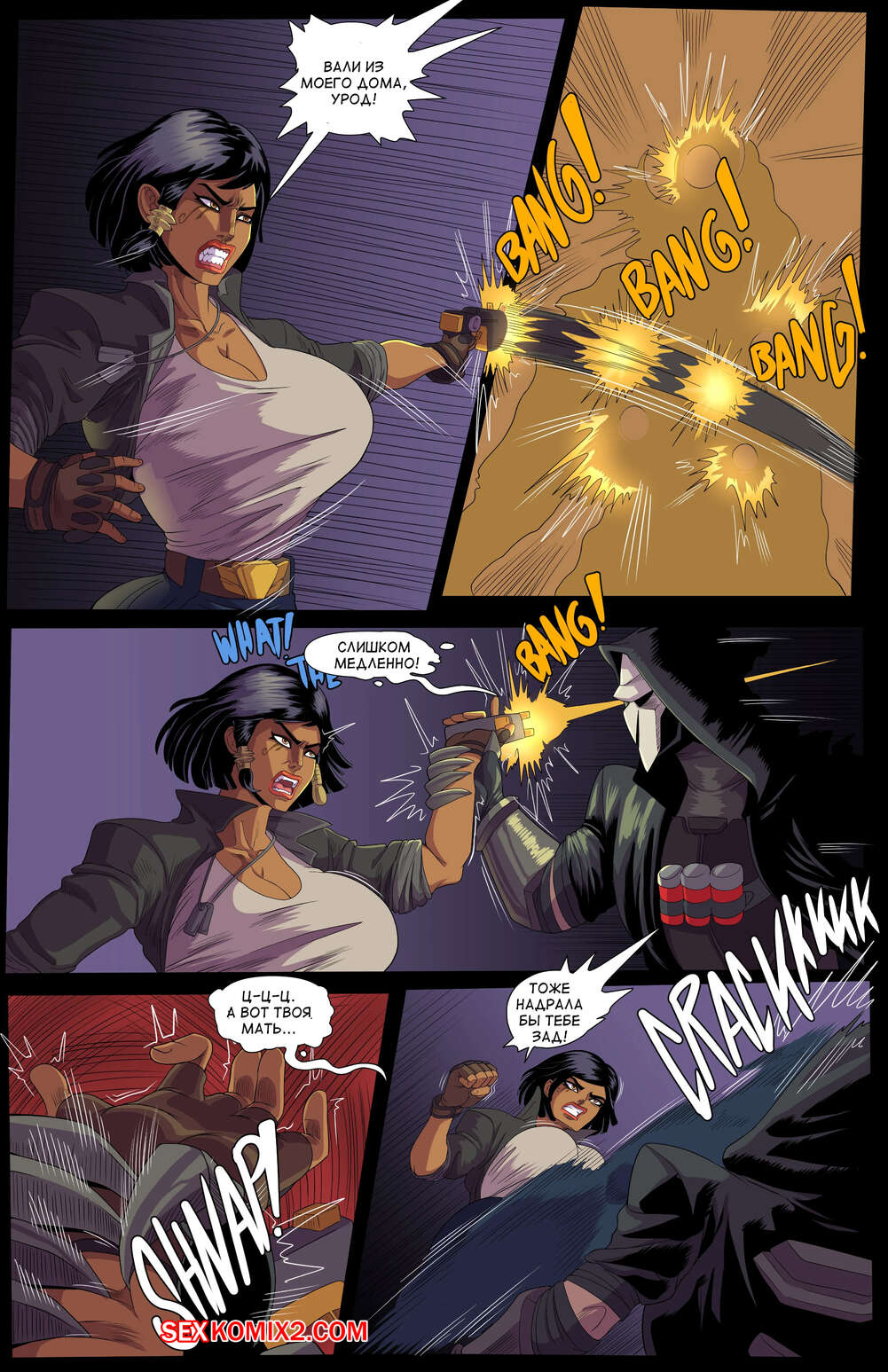 Порно комикс Overwatch. Цель. Фара. Target. Pharah. Loonyjams. Сексуальная брюнетка вступила в схватку с парнем, но он быстро ее одолел. Парень достал свой огромный хуй и дал ей его отсосать девушке, после чего хорошенько ее выебал.