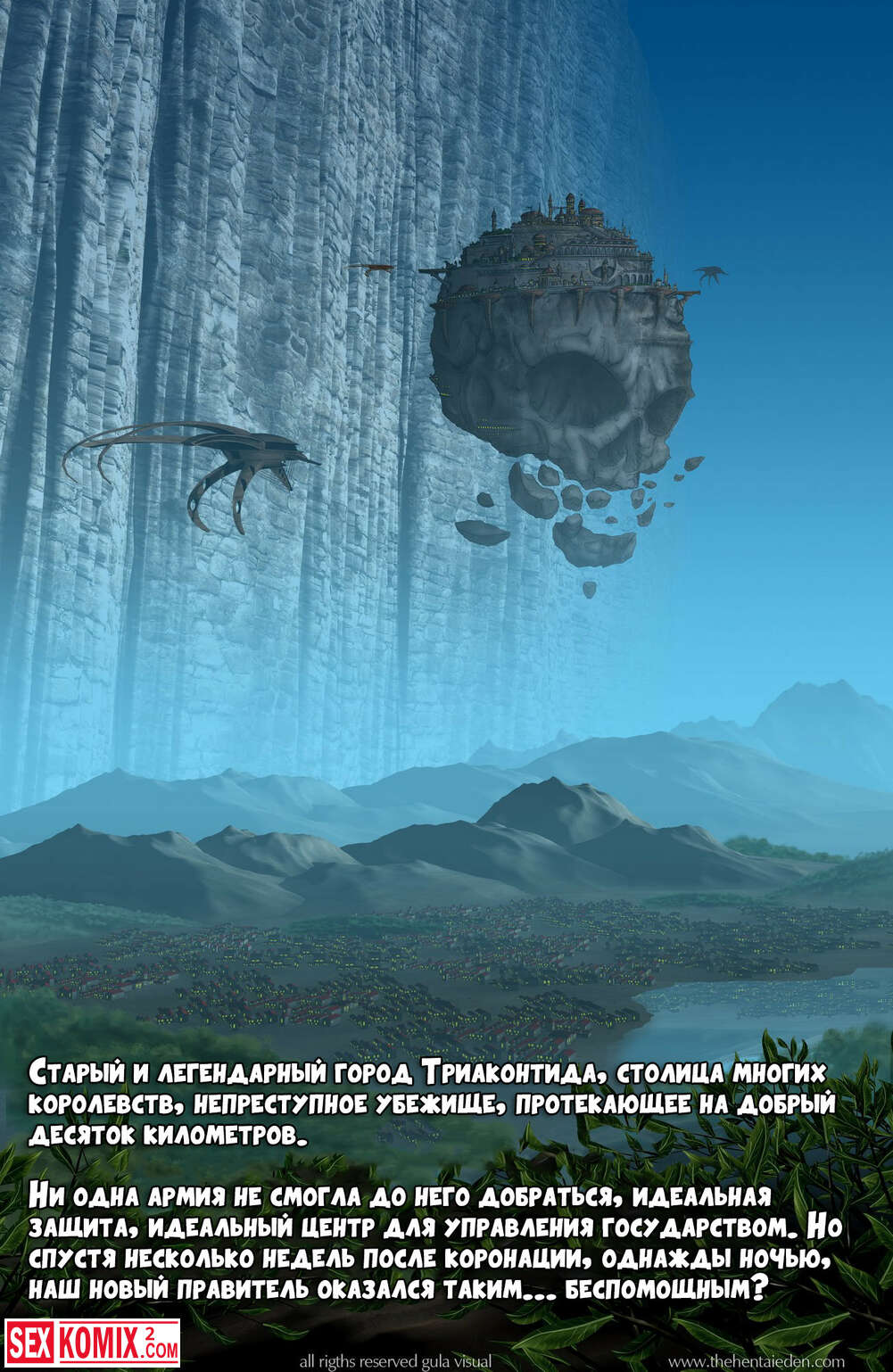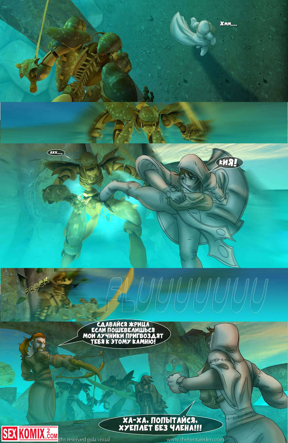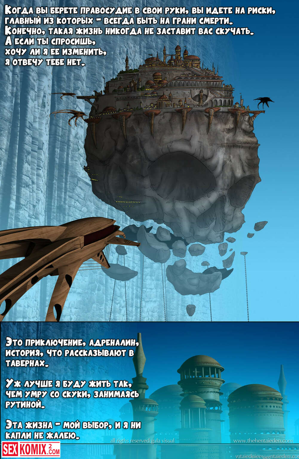 Порно комикс Eden. Фэнтези эротика. Волшебный мир, в котором за двумя девушками разбойницами гонится королевская стража, но девушки успешно скрываются.