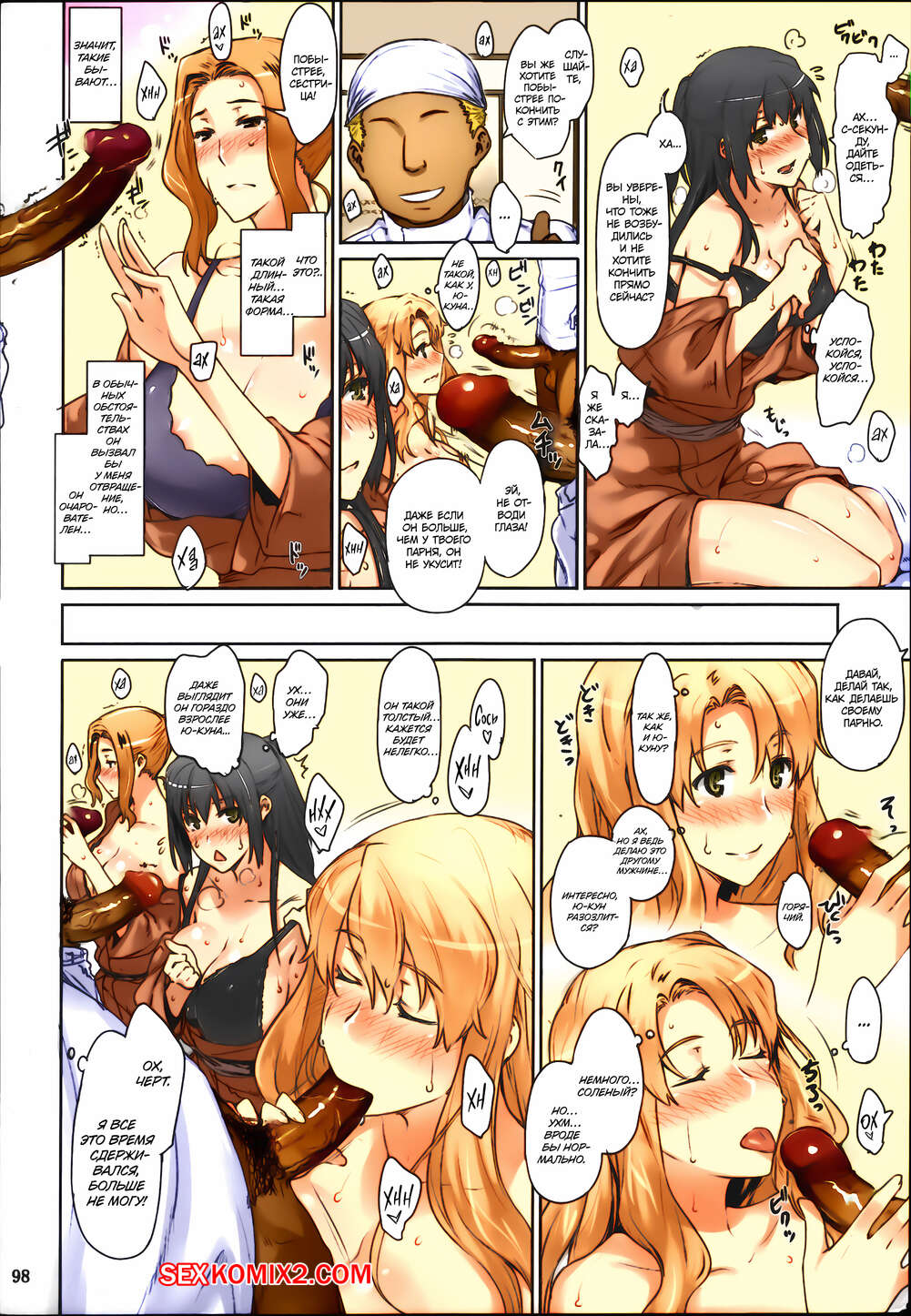 Порно комикс Tachibanasanchi no Dansei Jijou Matome Ban. Часть 2. Jin Горячие брюнетки встретились с темнокожими парнями и решили с ними повеселиться. Красотки разделись и отсосали большие хуи парней, после чего дали им себя хорошенько выебать.