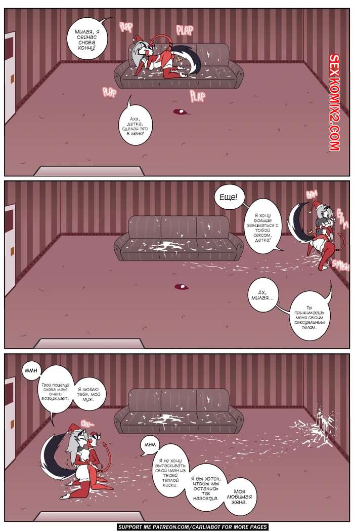 Порно комикс Адский босс. Рождественское похмелье. LoonaMoxxie. Christmas hangover. Carliabot Сексуальная блондинка Луна была очень возбуждена и решила повеселиться со своим дружком. Она разделась и стала сосать его большой хуй, после чего оседлала его член, чтобы он ее выебал.
