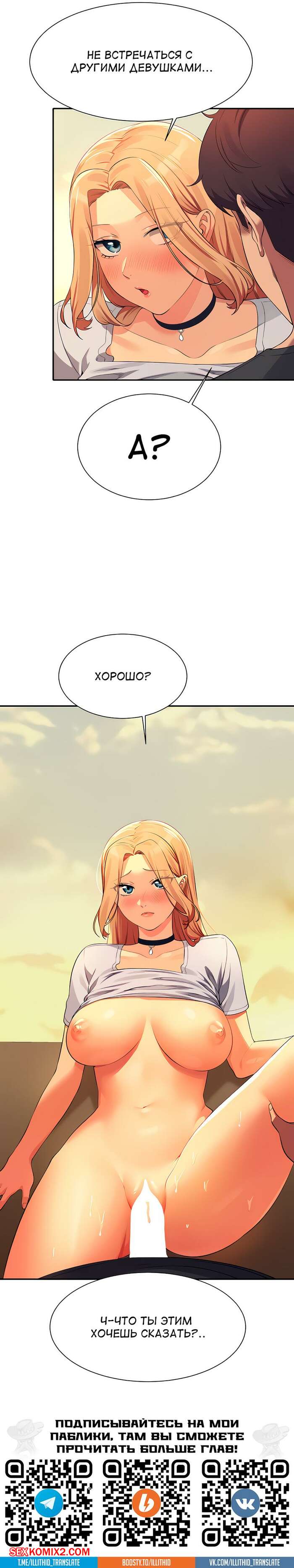 Порно комикс Неужели в инженерном колледже нет богинь. Части 90 и 91 и 92. Where is goddess Сексуальная блондинка была очень возбуждена и хотела трахаться. Она разделась и стала сосать большой хуй парня, после чего дала ему выебать свою пизденку.