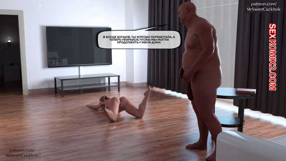 Порно комикс Твоя жена будет моей личной собственностью. Часть 2. Mr.SweetCuckhold. Сексуальная блондинка милфа осталась в гостинной наедине с лысым парнем. Он поставил девушку на колени и хорошенько выебал ее пизденку, заполнив ее своей спермой.