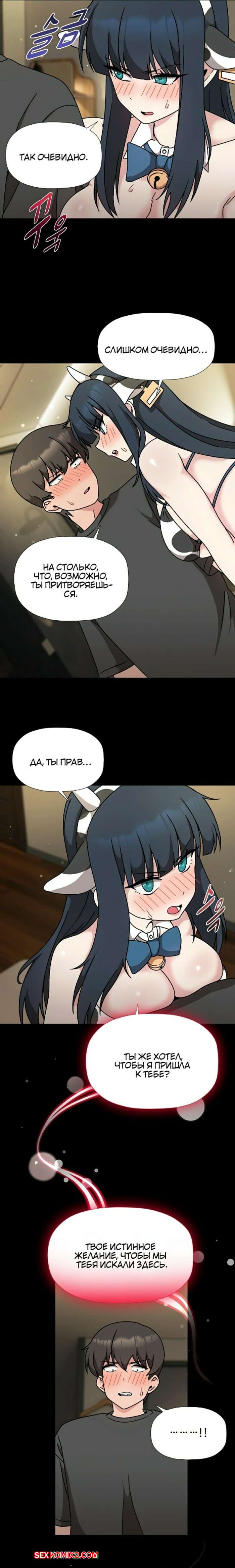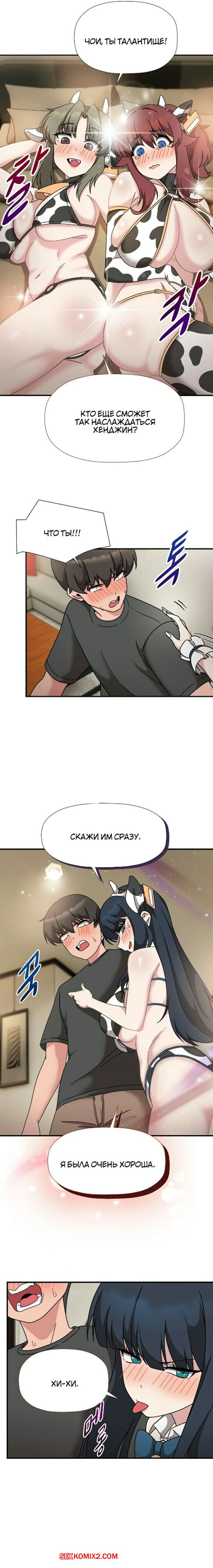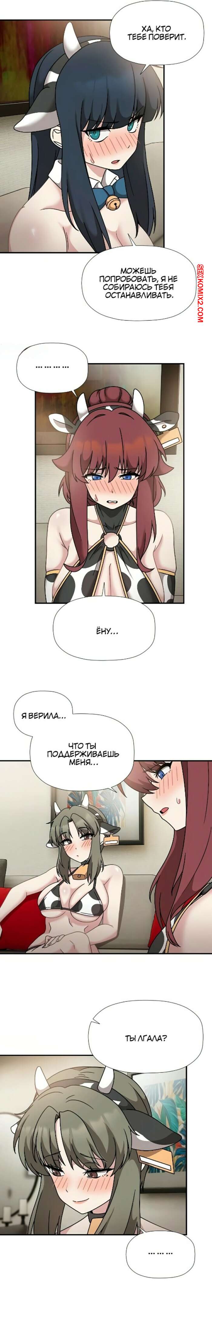 Порно комикс Набор подписчиков. Части 48 и 49 и 50. Recruiting followers Сексуальные красотки были очень возбуждены и хотели трахаться. Они надели сексуальные наряды и возбудили парня шикарными телами, после чего стали сосать его большой хуй.