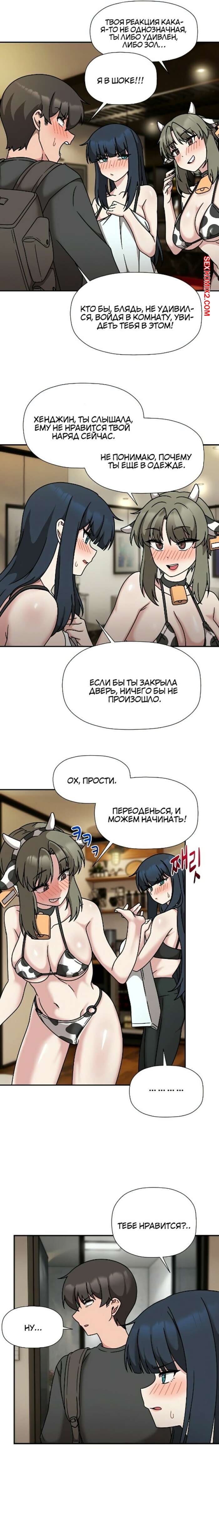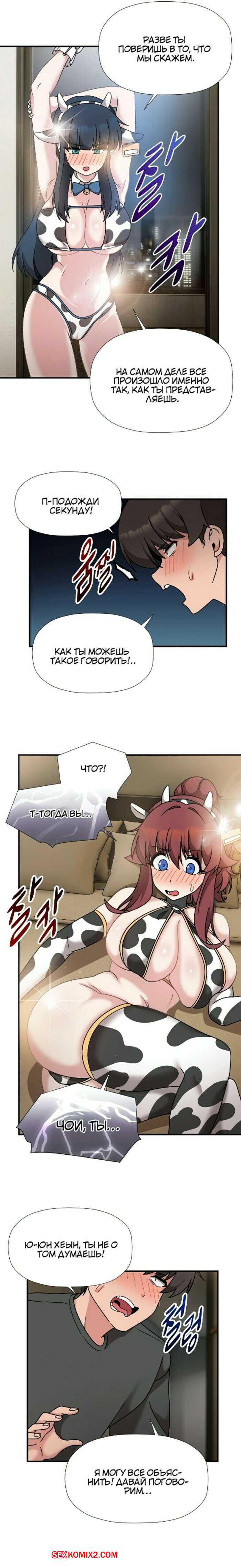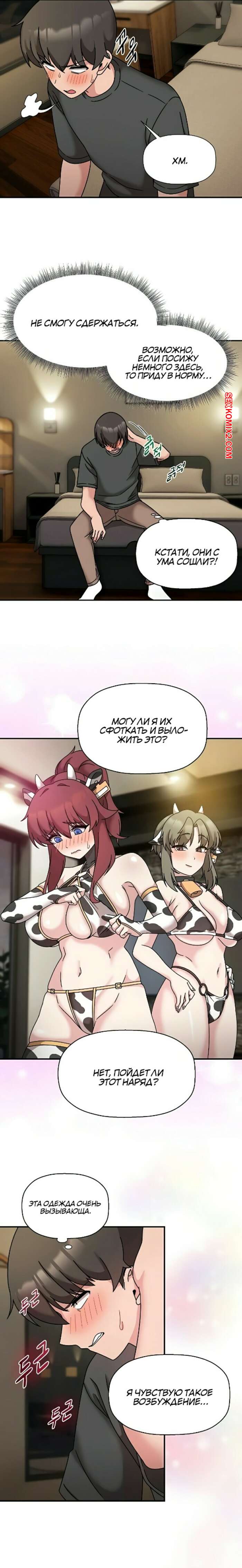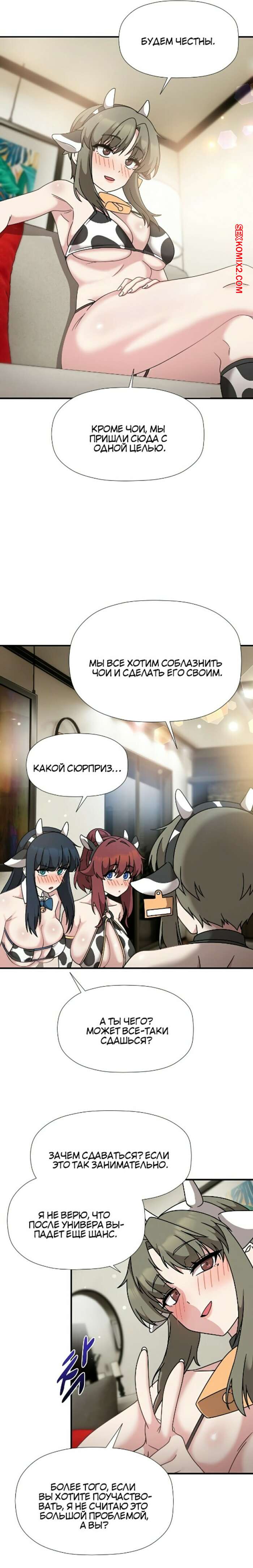 Порно комикс Набор подписчиков. Части 48 и 49 и 50. Recruiting followers Сексуальные красотки были очень возбуждены и хотели трахаться. Они надели сексуальные наряды и возбудили парня шикарными телами, после чего стали сосать его большой хуй.