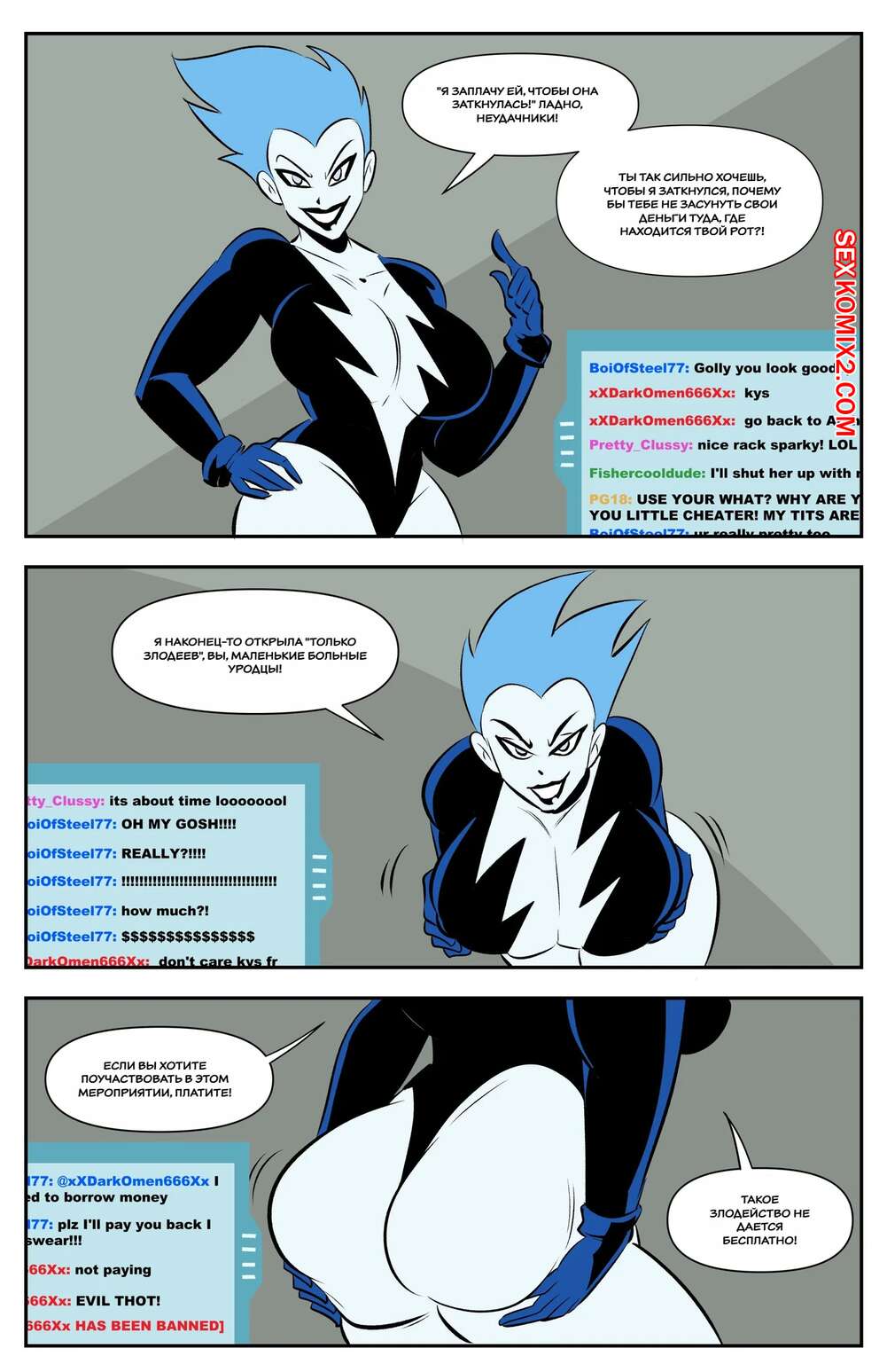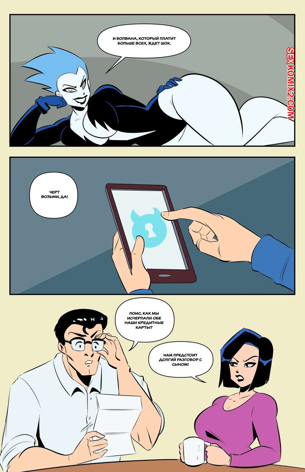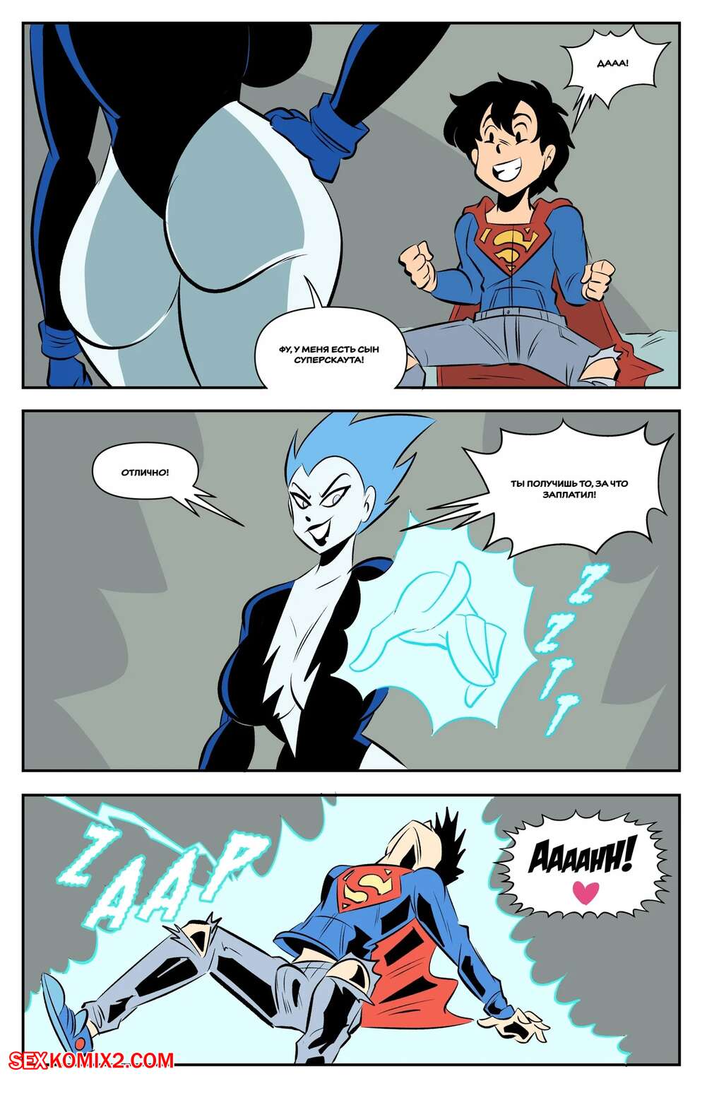 Порно комикс Супермен. Супер сыновья шокируют. Super Sons Shocking. Glassfish. Горячая милфа получила в свои руки сына Супермена и решила с ним повеселиться. Красотка оседлала большой хуй парня и дала ему выебать свою пизденку, получив огромное удовольствие.