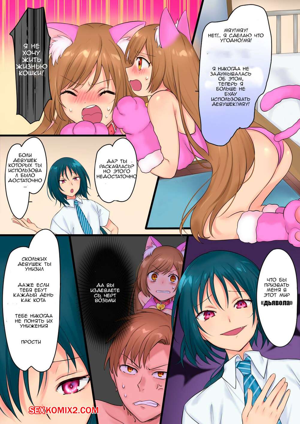 Порно комикс О моем перерождении в домашнюю сучку дьявола. Hiiragi Popura Молодая девушка с большим членом превратила парня со школы в сексуальную брюнетку. Она стала лизать пизденку девушки, после чего хорошенько ее выебала своим хуем.