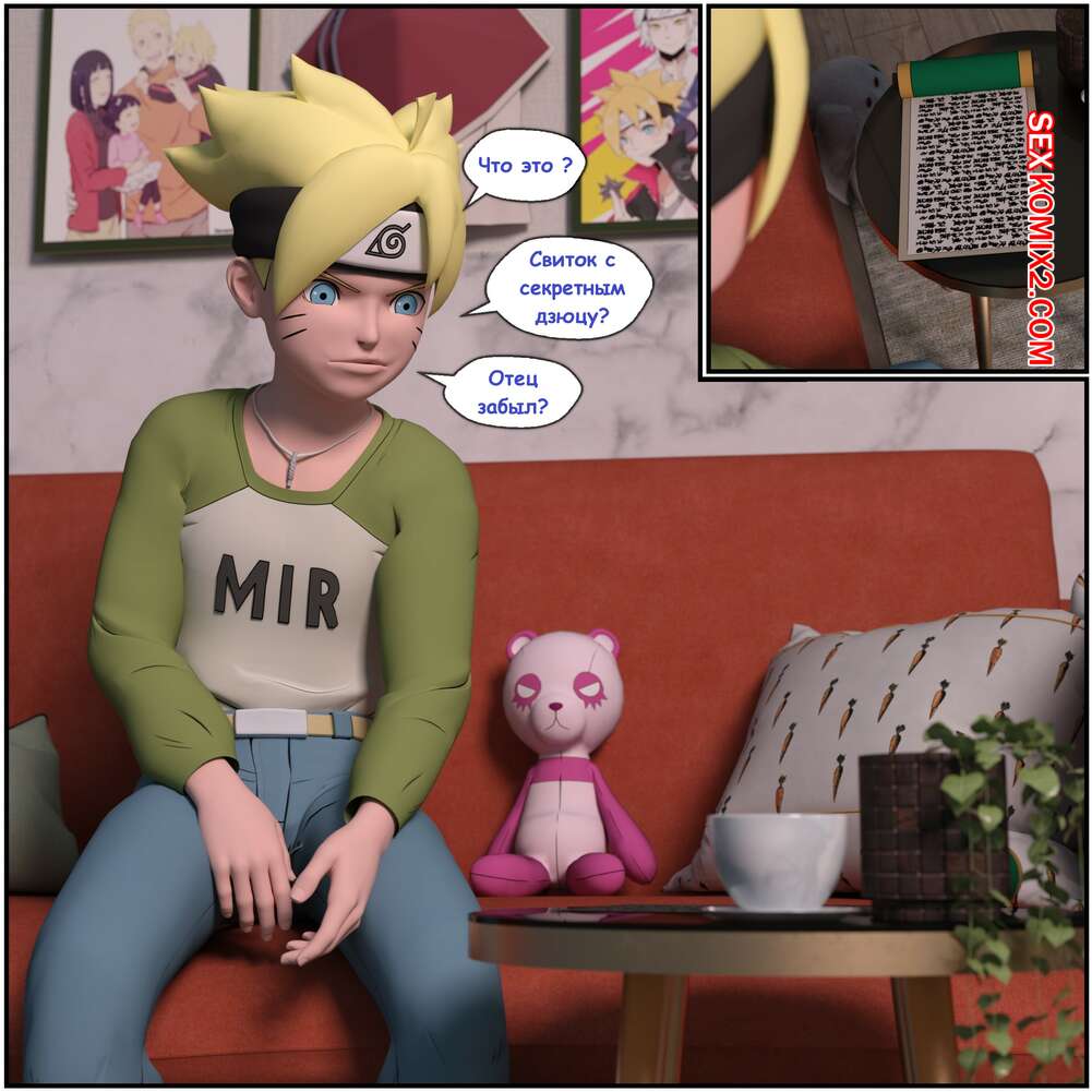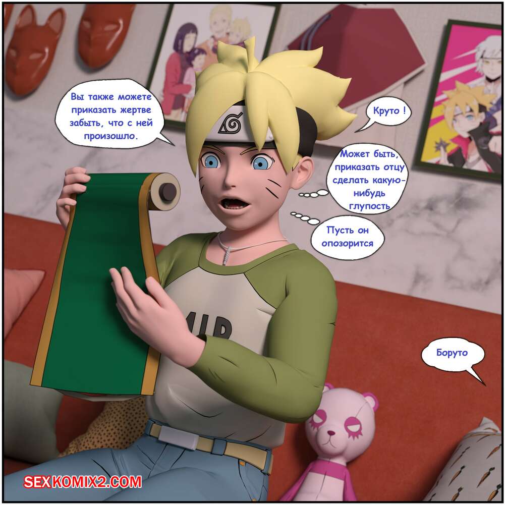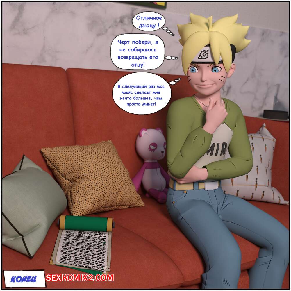 Порно комикс Naruto. Боруто и свиток Джирайи. Boruto and the Jiraiya Scroll. Darkfaust Боруто овладел волшебным свитком, благодаря которому он может управлять своей горячей мамочкой. Красотка разделась перед сыном и позволила ему потрогать свои большие сиськи, после чего отсосала его член.