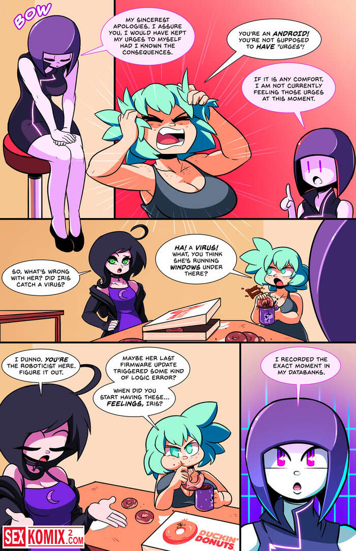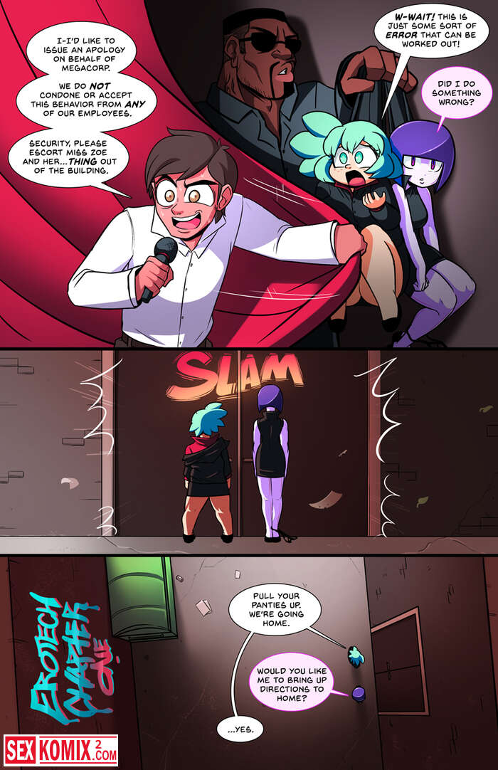 Порно комикс Эротэч. Erotech. Часть 1. Английский. Женщина изобретатель презентовала всему миру своего секс робота. Она выглядит как девушки и умеет все виды секса.