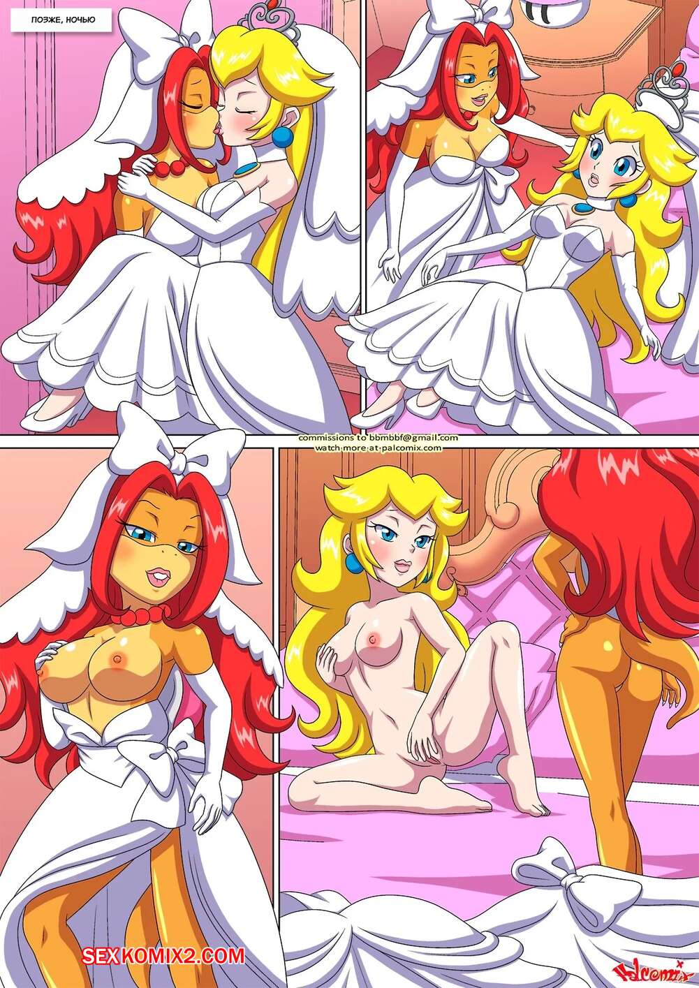Порно комикс Пич и Венди. Часть 3. Peach X Wendy. Palcomix Горячие красотки решили отпраздновать свою свадьбу и пригласили для этого подругу. Девушки разделись и стали ласкать друг дружку, после чего занялись групповой лесбийской еблей.