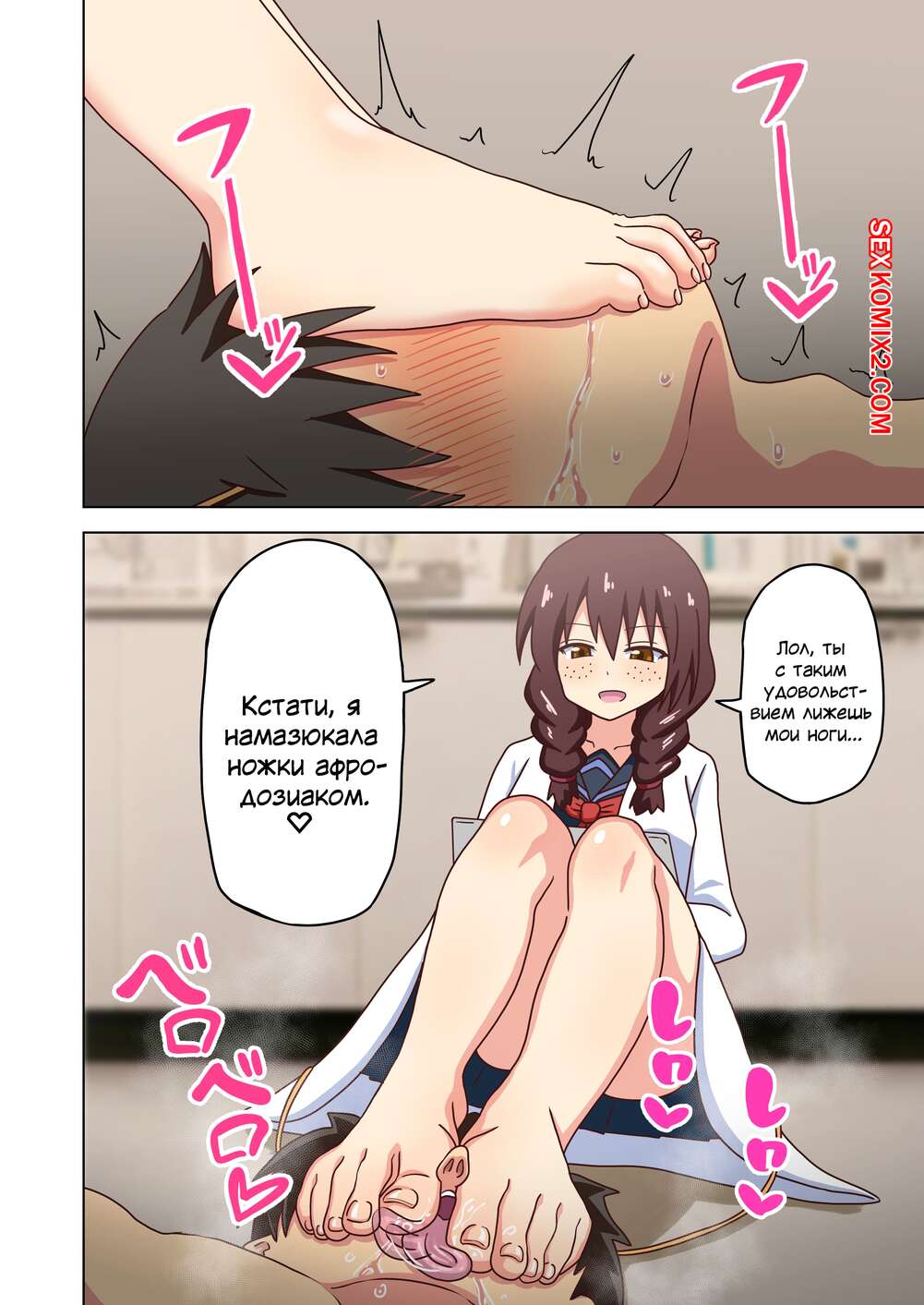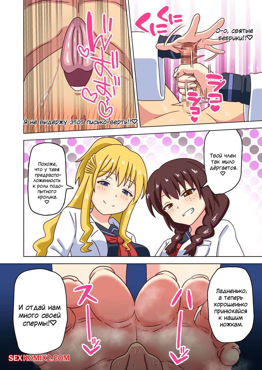 Порно комикс История футфетишиста. Часть 30. Nush Молодые горячие красотки были очень возбуждены и решили повеселиться со своим дружком. Они дали парню полизать свои ножки, после чего подрочили ими хуй парня и помогли ему кончить.