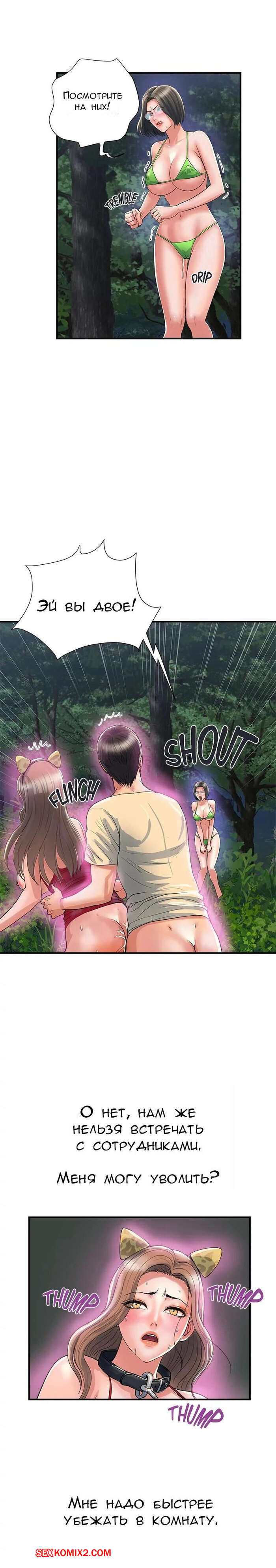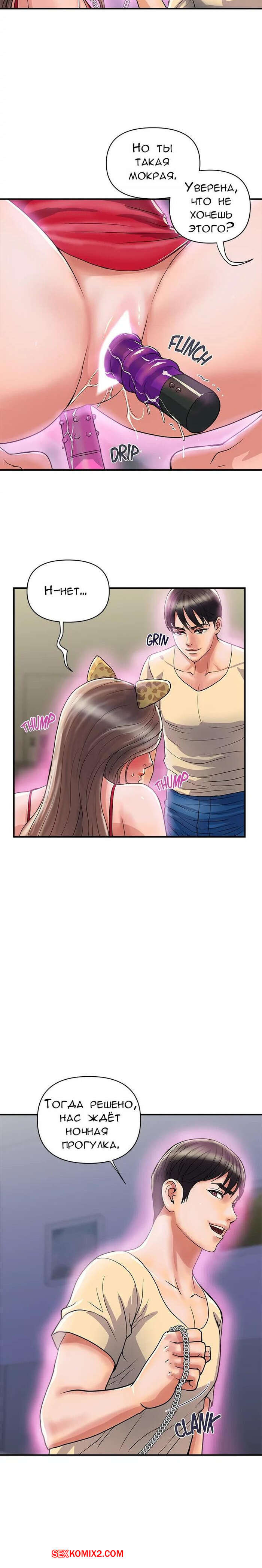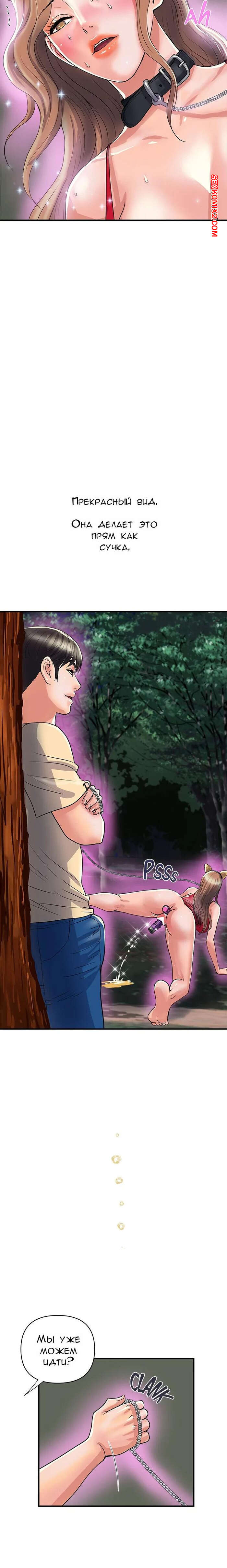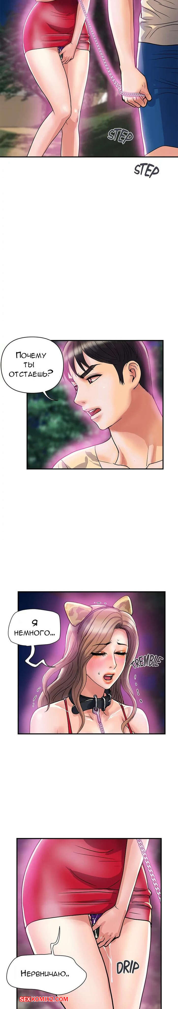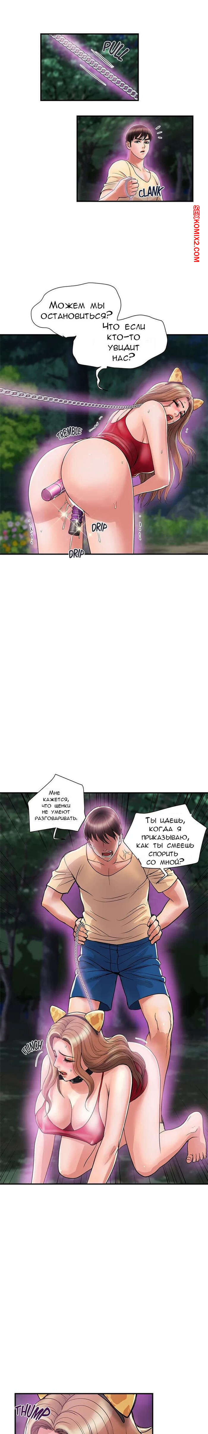 Порно комикс Феромоны. Часть 19 и 20 и 21. Pheromones Парень надел ошейник на горячую брюнетку и вывел ее в парк. Там девушка встала на колени и отсосала большой хуй парня, после чего дала ему себя хорошенько выебать.