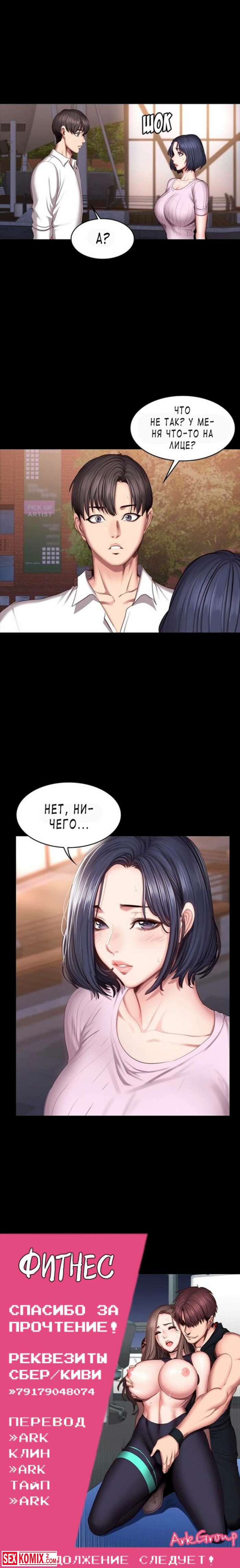 Порно комикс Фитнес. Части 46 и 47. Вечерние индивидуальные тренировки приводят как всегда только к сексу. И снова тренер ебет свою клиентку.