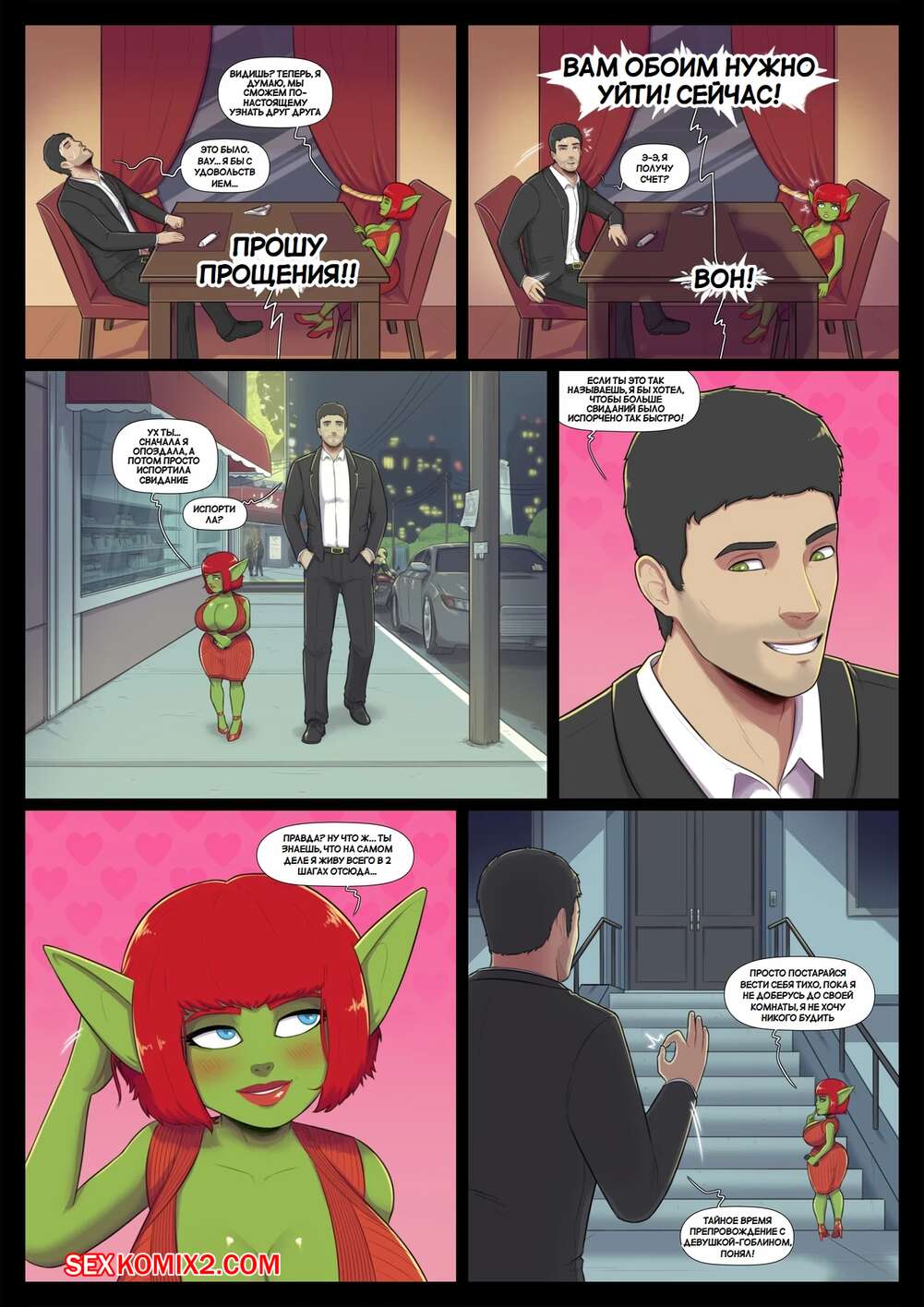 Порно комикс Свидание гоблина. Goblind Date. Black Hornet. Горячая рыжая дама гоблин отправилась на свидание с мужчиной. У милфы давно не было секса, поэтому она стала сосать хуй парня прямо в ресторане, после чего они отправились к ней домой и занялись сексом.