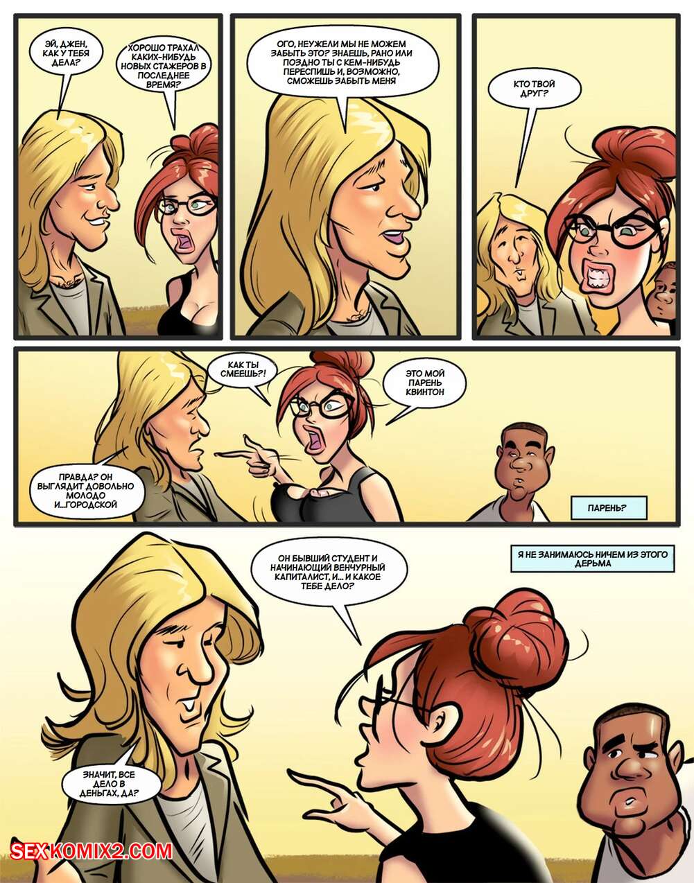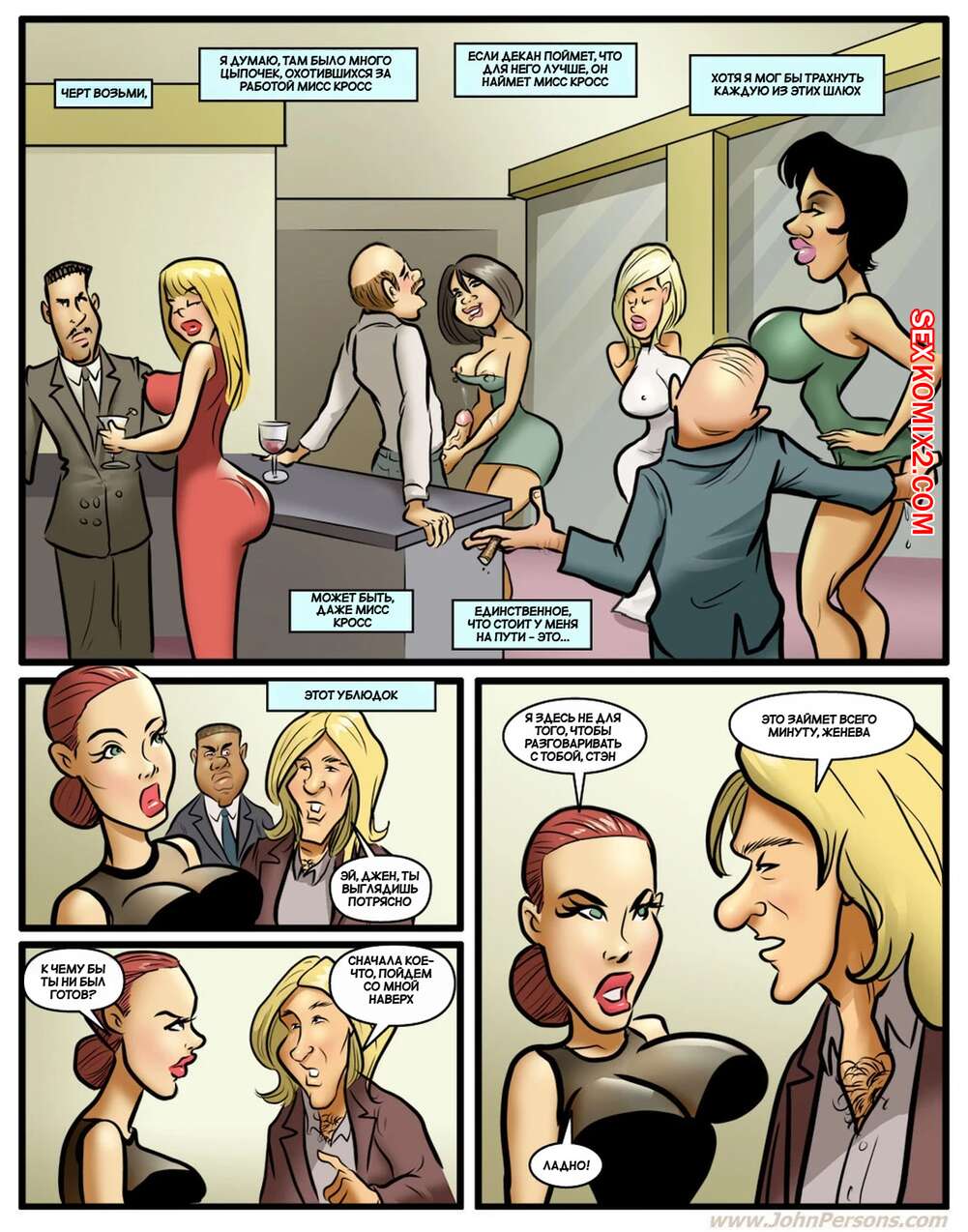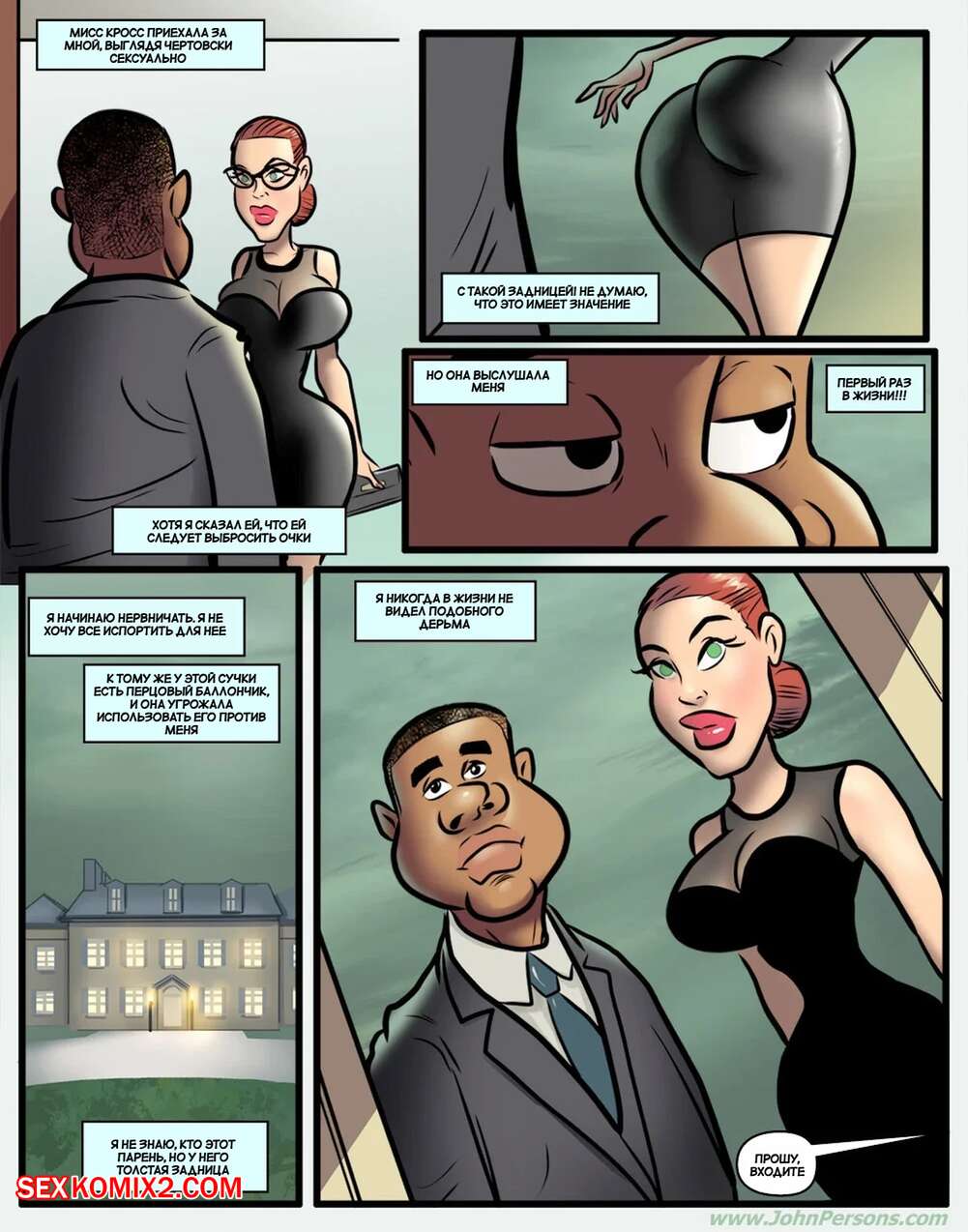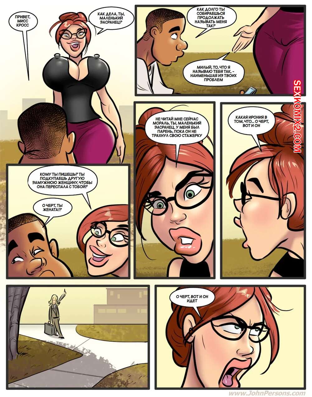 Порно комикс Горячо для миссис Кросс. Часть 2. Hot for Mrs. Cross. DirtyComics Горячая рыжая милфа отправилась со своим новым парнем на вечеринку. Там им стало скучно, поэтому сучка отсосала большой хуй темнокожего паренька, после чего дала ему себя выебать.