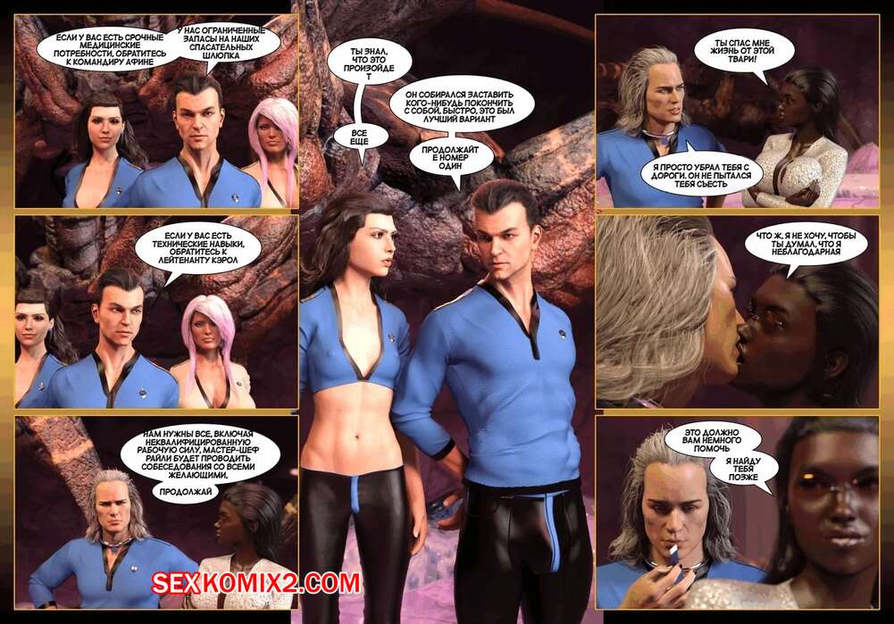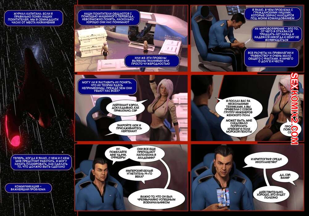 Порно комикс Пираты Угольного Мешка. Часть 1. Pirates of the Coal Sack. DangerousLines. Горячая темнокожая красотка была очень возбуждена и решила повеселиться со своим дружком на космическом корабле. Она разделась и отсосала его большой хуй, после чего получила сперму парня.