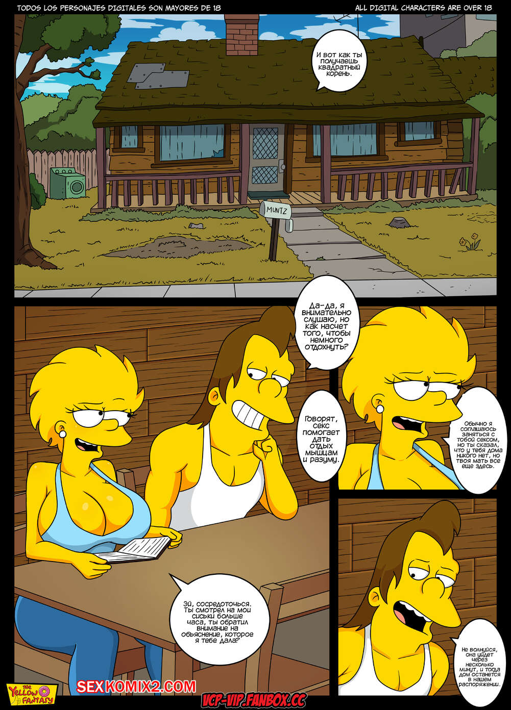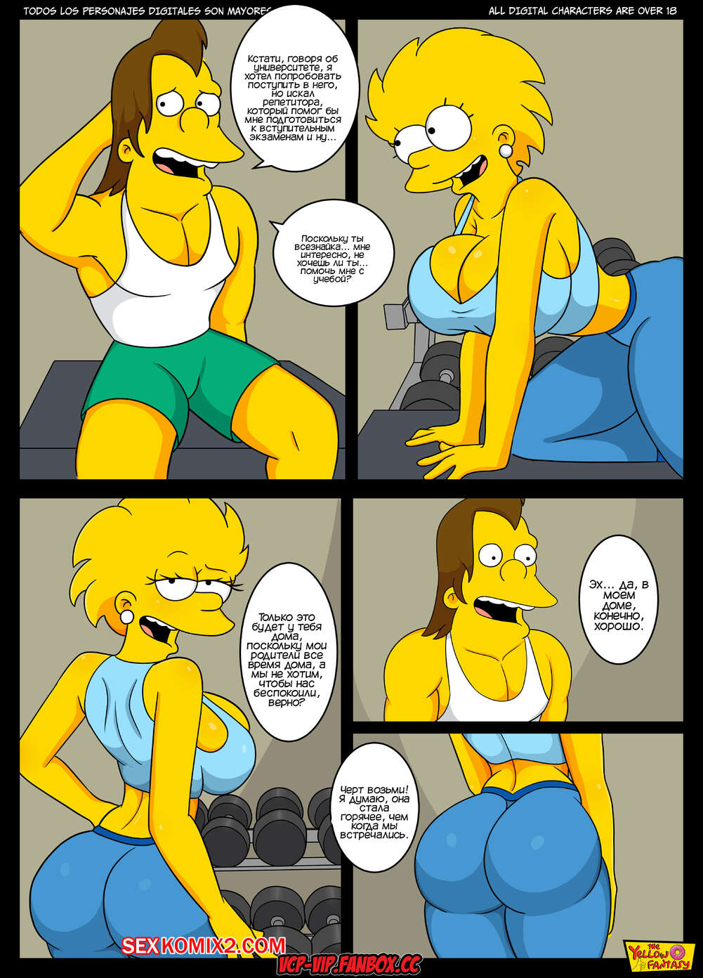 Порно комикс Симпсоны. Желтая фантазия. Часть 6. Репетитор Нельсона. Nelsons Tutor Лиза встретила Нельсона в спортзале и парень обратился к девушке за помощью в учебе. Они занимались у парня дома, но он постонно глядел на сиськи девушки и предложил ей потрахаться.