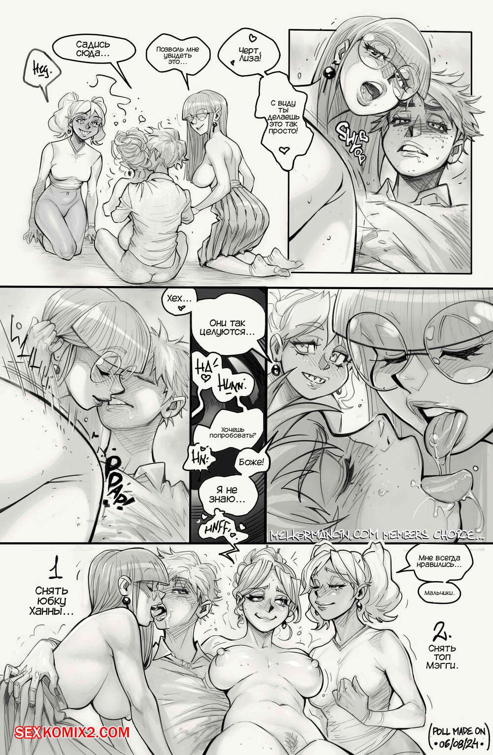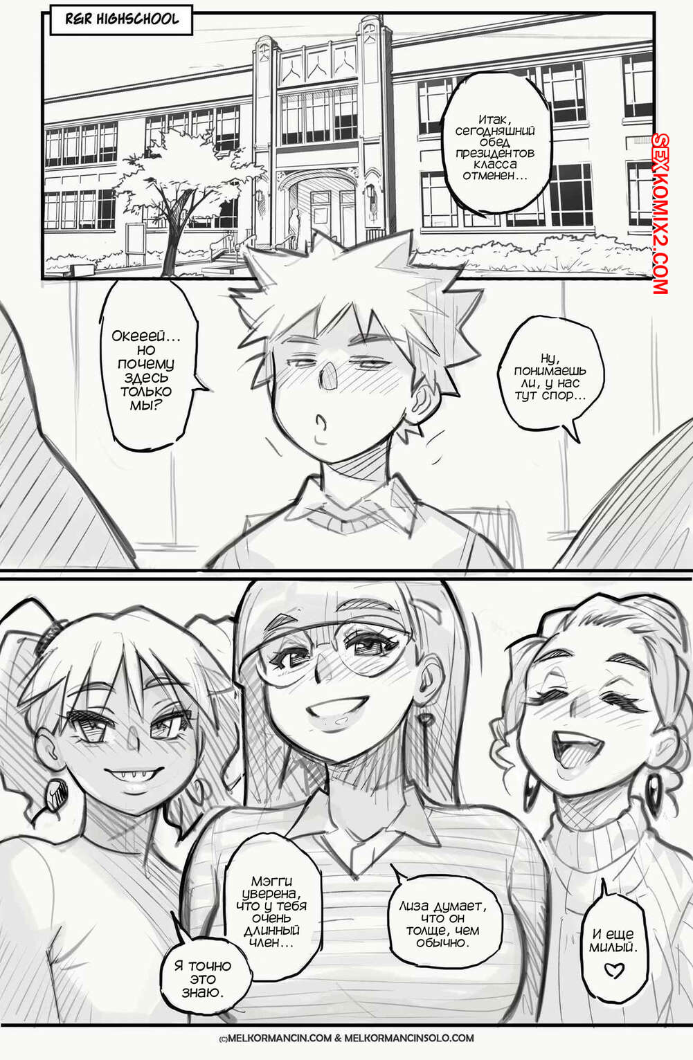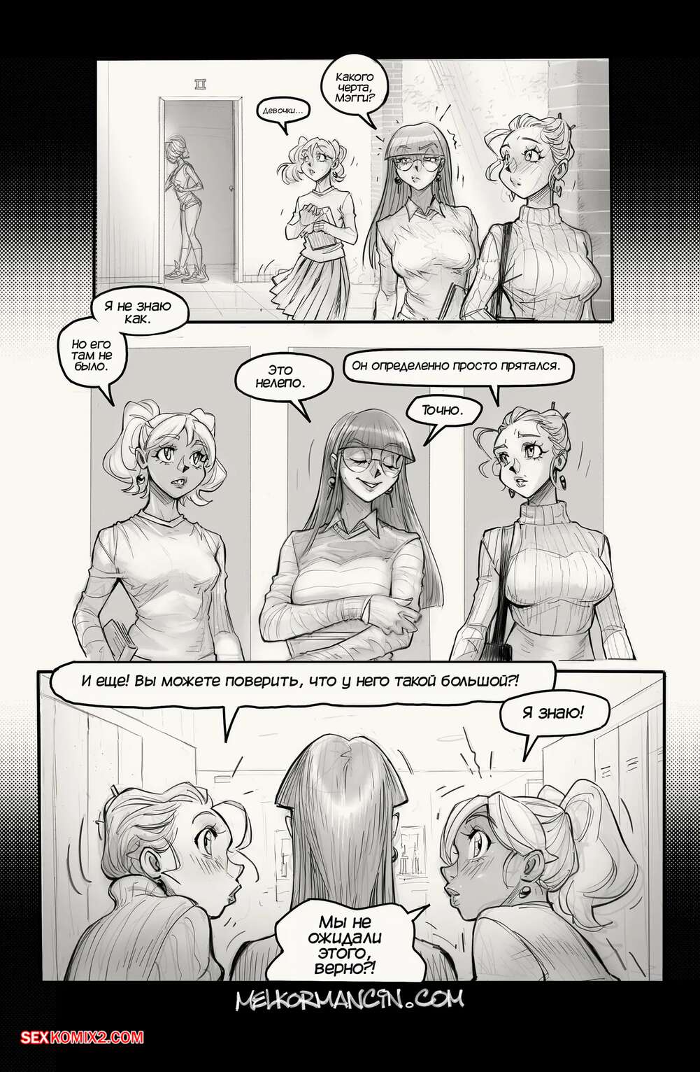 Порно комикс Обед с Тимом. Lunch Time With Tim. Melkor Mancin Горячие красотки без ума от большого члена молодого парня Тима. Они раздеваются перед ним и хорошенько сосут большой хуй парня, после чего дают ему себя хорошенько выебать.