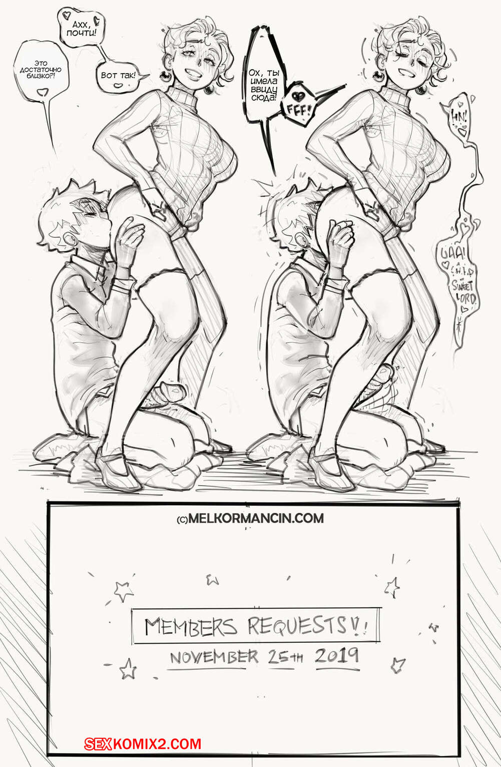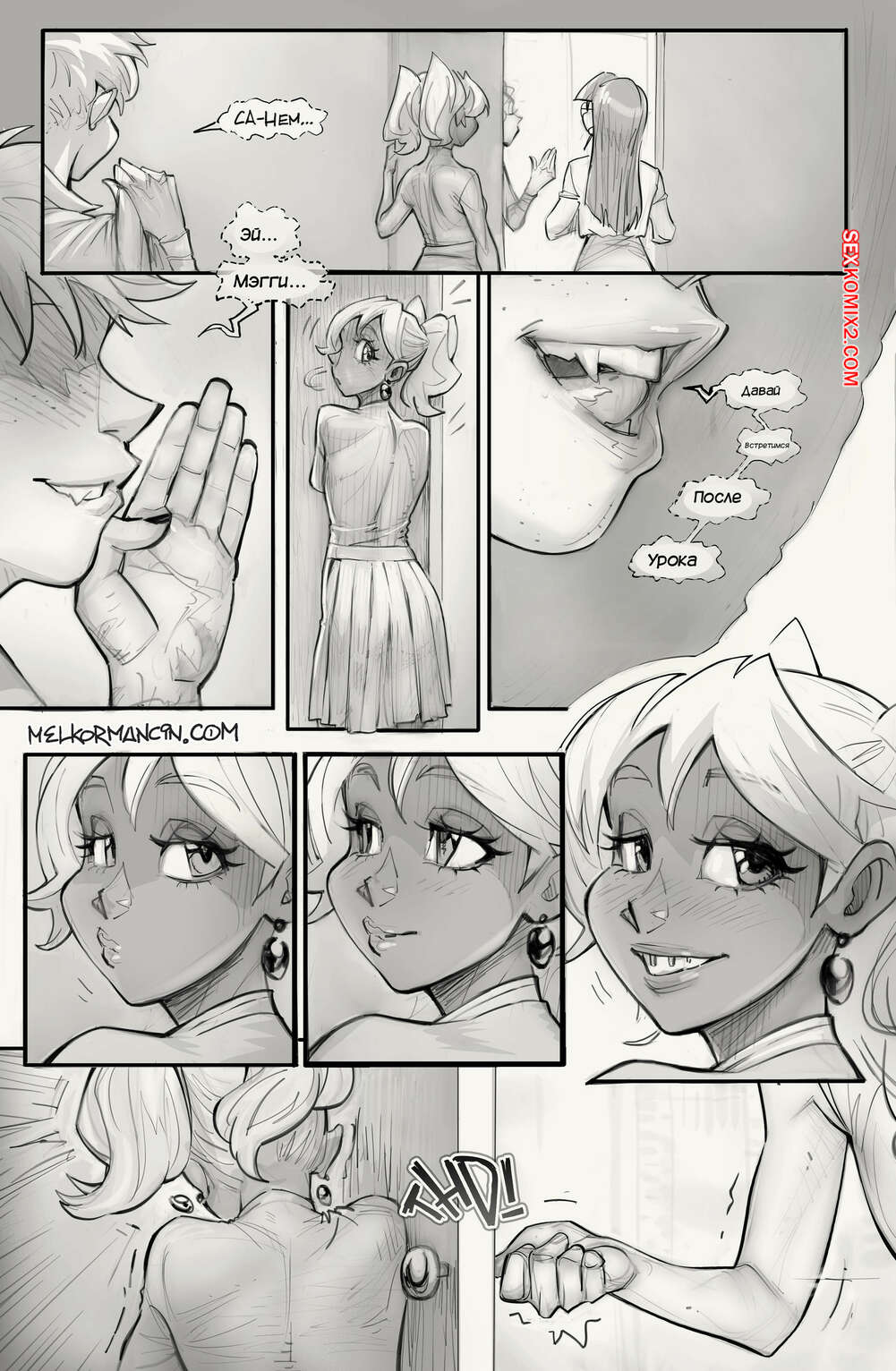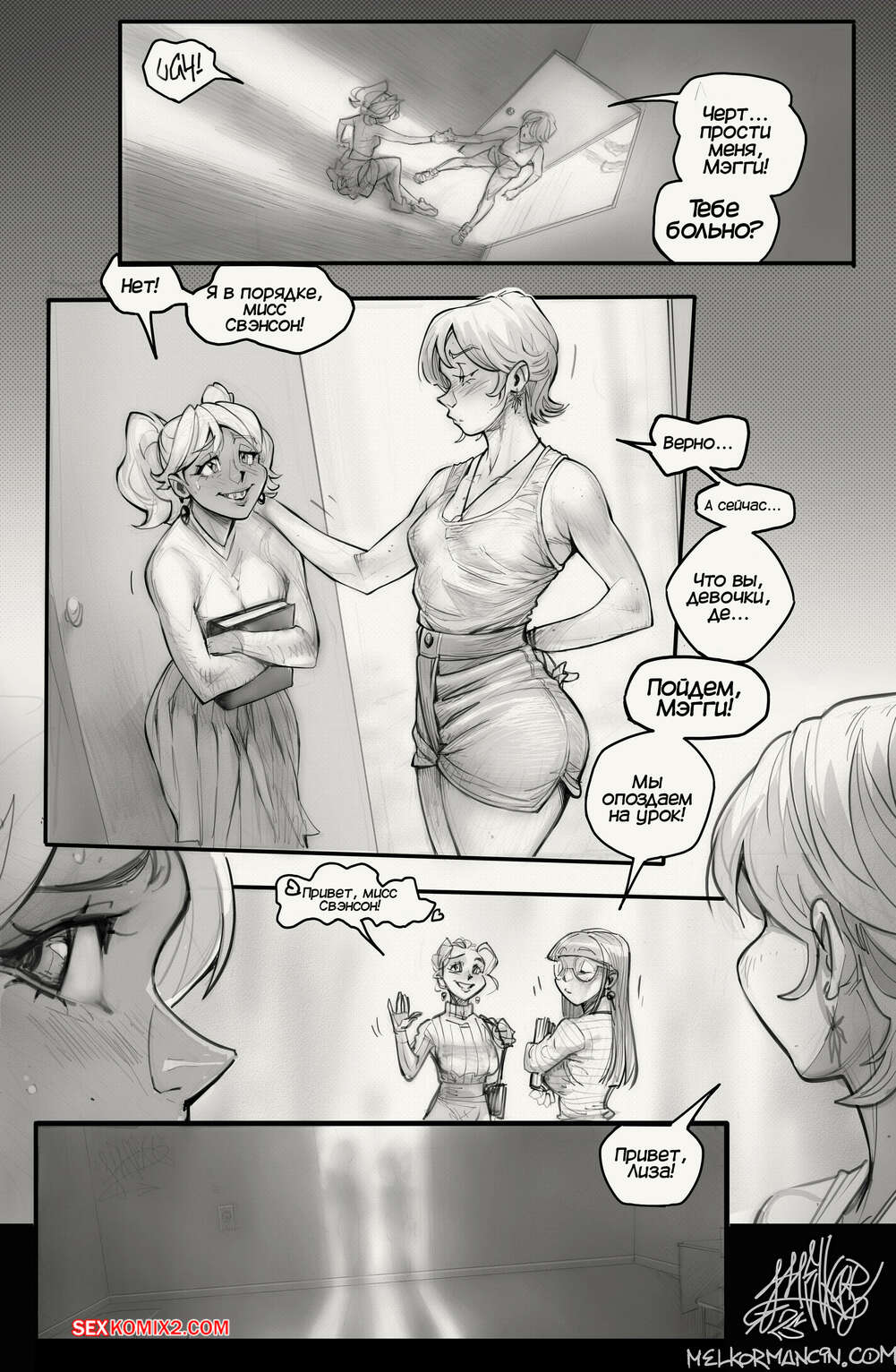 Порно комикс Обед с Тимом. Lunch Time With Tim. Melkor Mancin Горячие красотки без ума от большого члена молодого парня Тима. Они раздеваются перед ним и хорошенько сосут большой хуй парня, после чего дают ему себя хорошенько выебать.