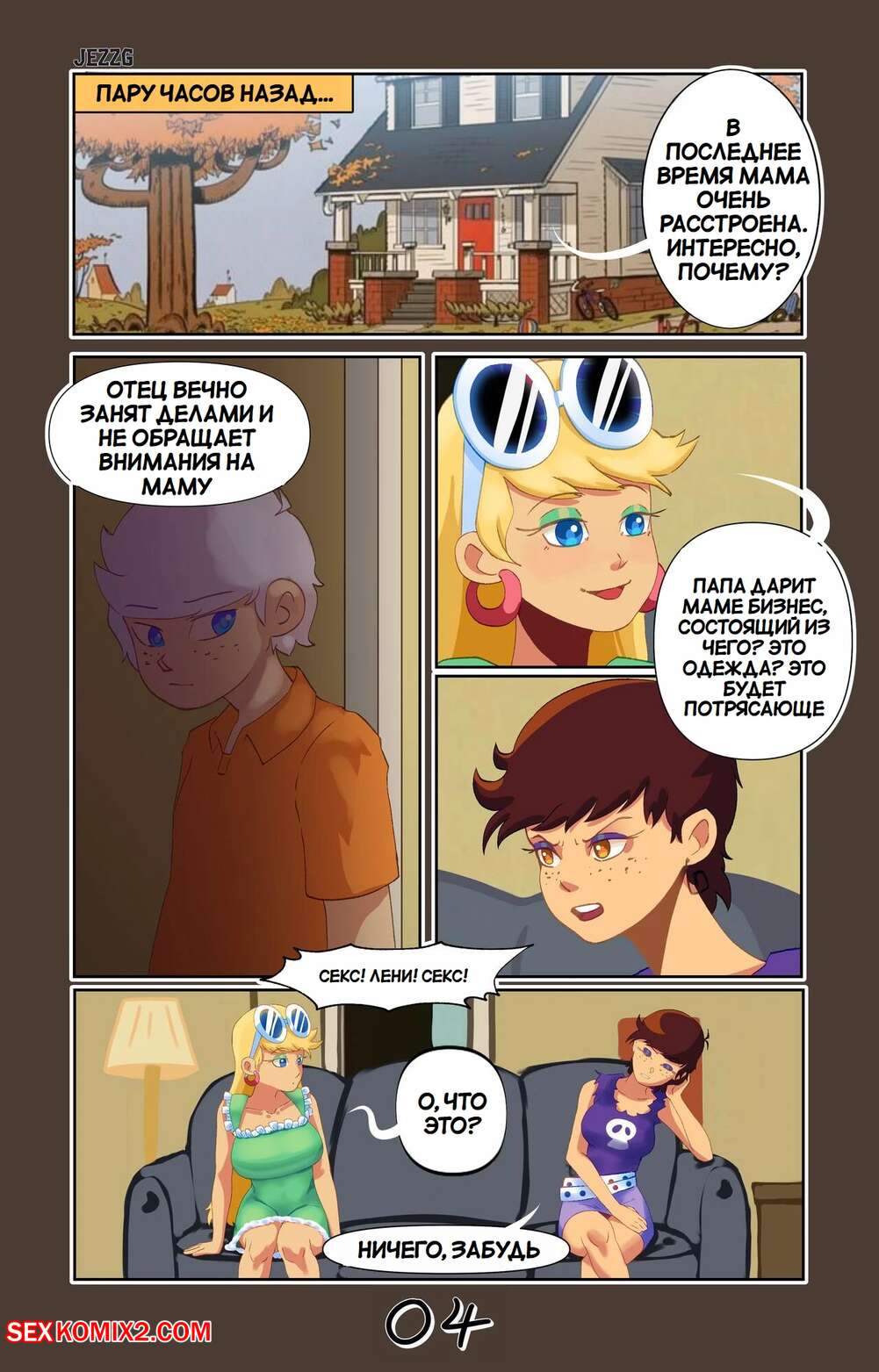 Порно комикс Шумный дом. Ночной визит. The Loud House. Night Visit. Jezz G. Парень пришел в спальню к своей матери когда она крепко спала и воспользовался этим чтобы облизать ее сочный сиськи.