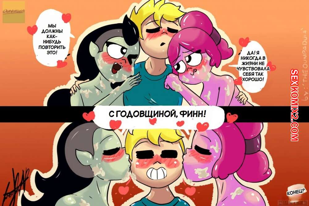 Порно комикс Время приключений. Счастливый час. Happy Hour Горячие красотки были очень возбуждены и решили повеселиться со своим дружком. Они разделись и отсосали большой хуй парня, после чего дали ему себя выебать во все дырочки.