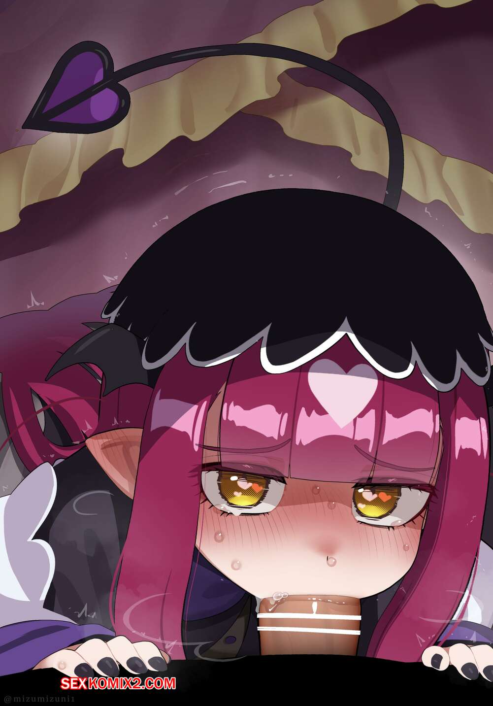 Порно комикс Mizumizuni. Sakkyun. Саккюн Горячая брюнетка была очень возбуждена и решила повеселиться со своим дружком. Она разделась и отсосала большой хуй парня, после чего дала ему кончить себе в ротик.