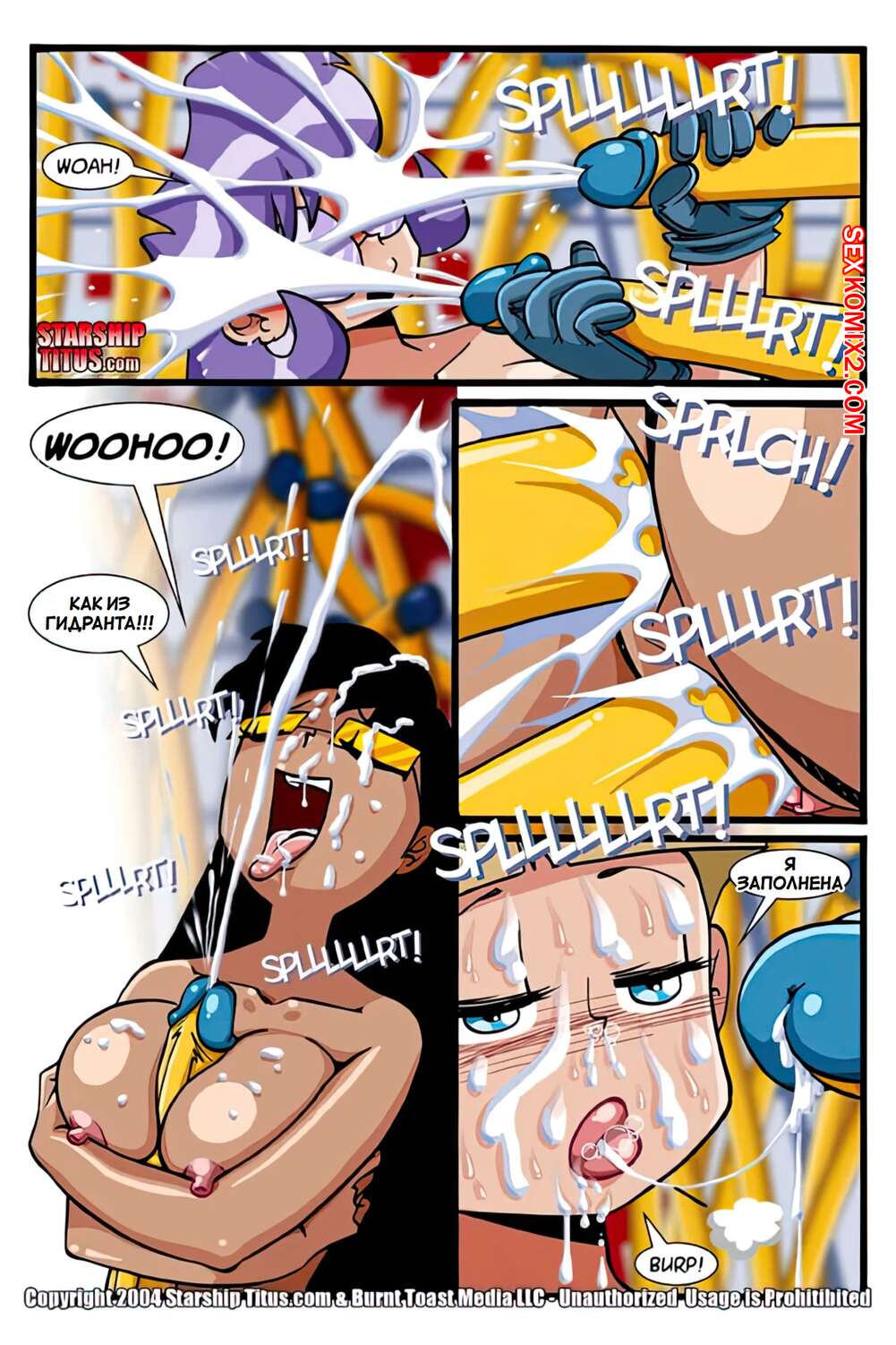 Порно комикс Звездый корабль Тит. Часть 6. Starship Titus Горячие красотки были схвачены существами с тентаклями. Они раздели девушек и связали их, после чего выебали красоток во все дырочки, доставив им огромное удовольствие.