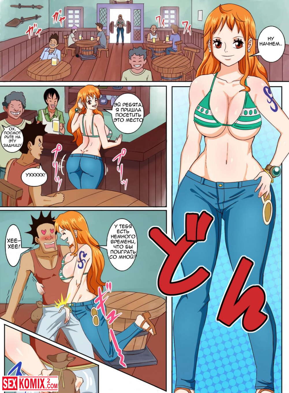 Порно комикс Пиратки в баре. Горячие девушки пираты пришли в бар у пристани и устроили для местных секс шоу.
