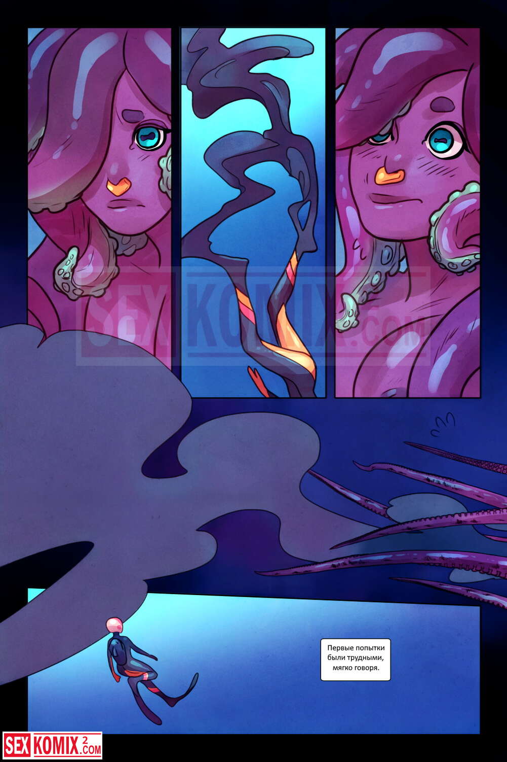 Порно комикс Нарисованный океан. Часть 2. Slipshine. Новый объект исследования оказался не таким смелым и потребовалось время, что он подошёл ближе и позволил себя рассмотреть.