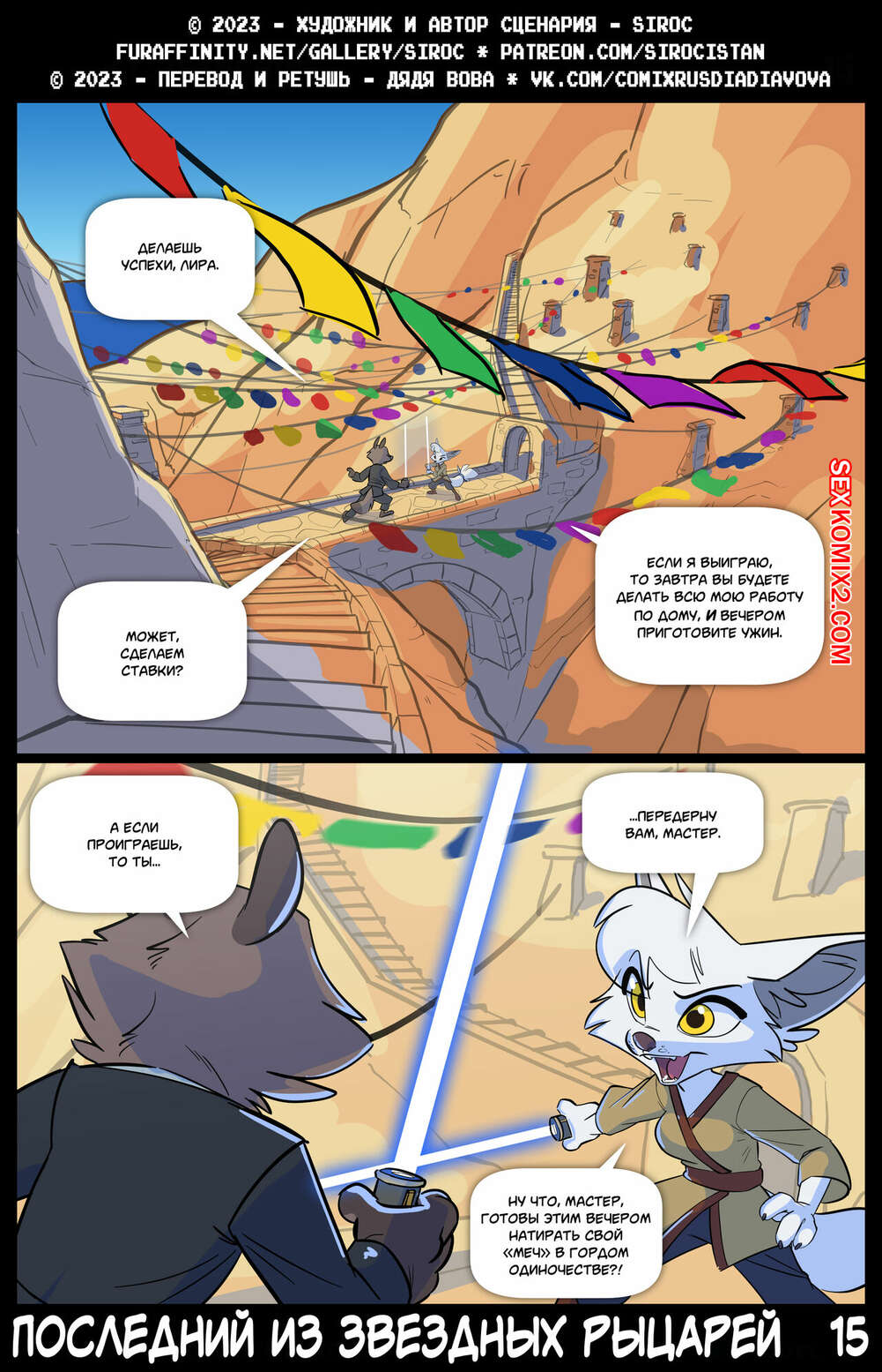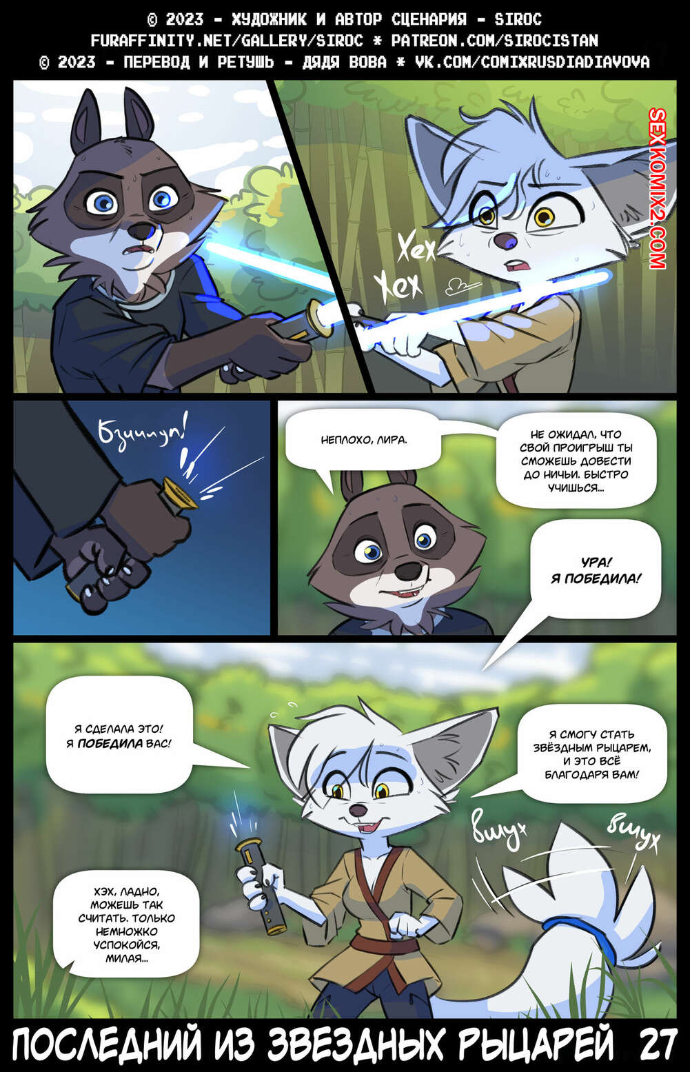 Порно комикс Последний из звездных рыцарей. The Last Star Knight. Siroc Девушка была очень возбуждена и решила повеселиться со своим дружком. Она разделась и отсосала большой хуй парня, после чего дала ему выебать свою пизденку.