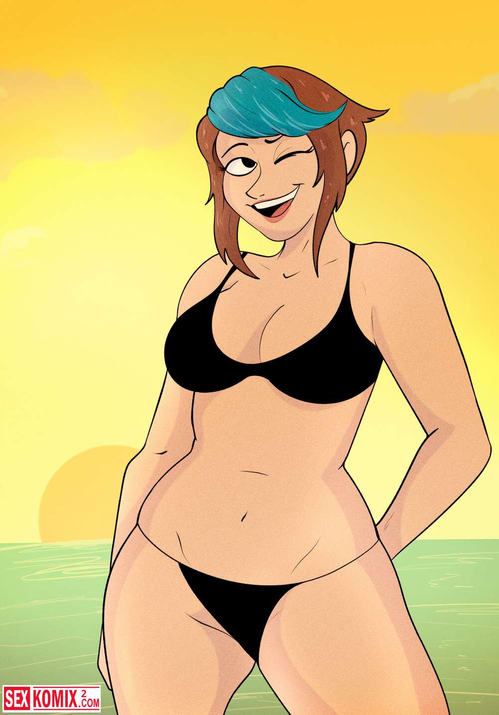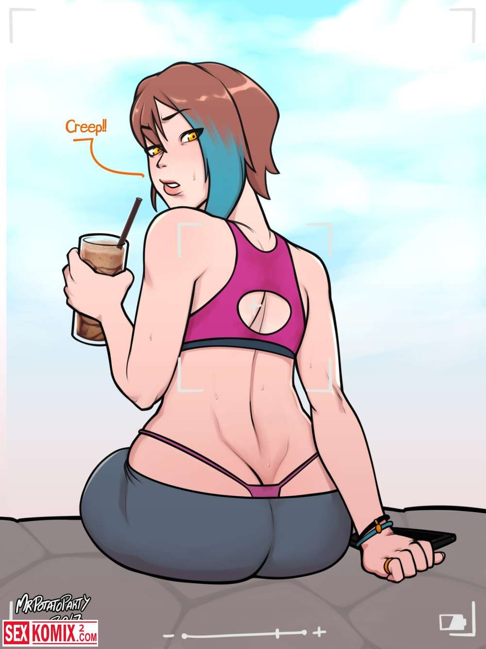 Порно комикс Микаэла Льюис. Mr.Potatoparty. Изображение аппетитной девушки с большой задницей. Она в разных позах демонстрирует нам свое тело.
