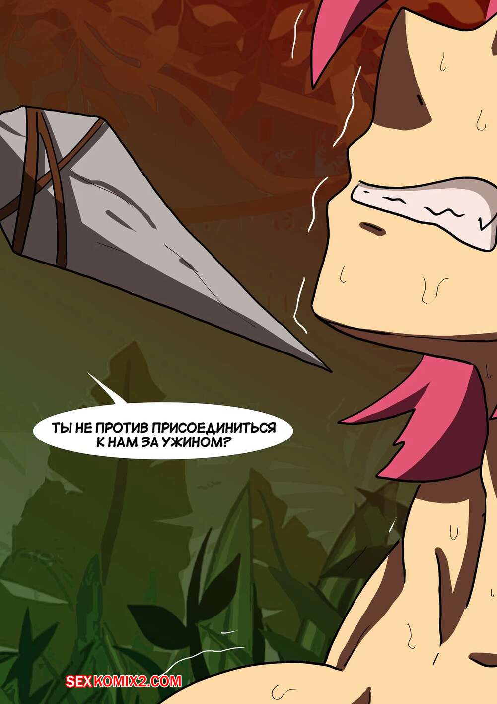 Порно комикс Проблемы в джунглях. Jungle Trouble. Bourgine Oscar. Горячая красотка попала в плен к парням в темнокожем племени. Один из парней раздел девушку и хорошенько выебал ее своим большим хуем, после чего приготовил из нее ужин.
