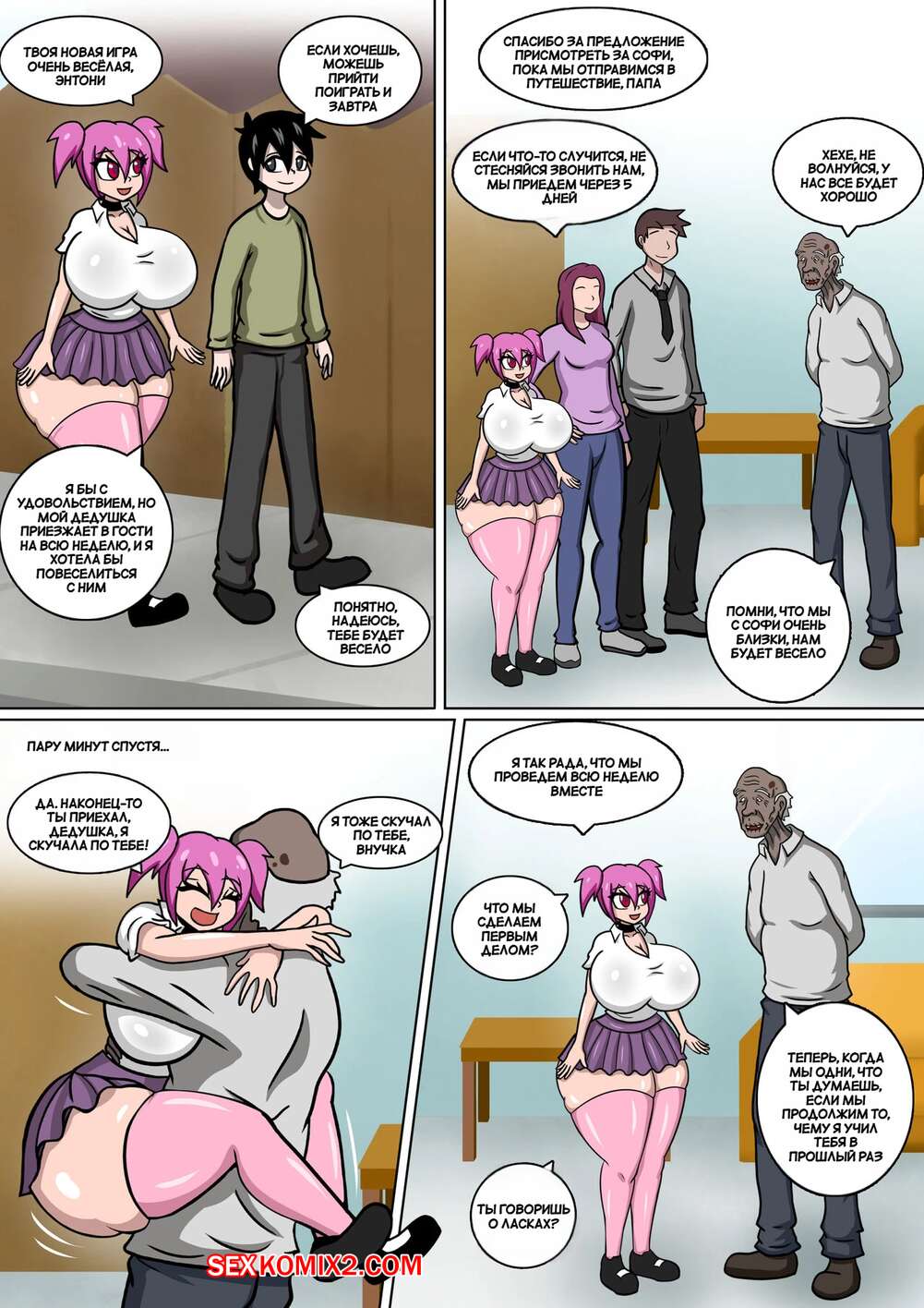 Порно комикс Влюбленный дедушка. Часть 2. Grandpa in Love. Dibuctor. Темнокожий старик возбудился при виде шикарного тела своей сексуальной внучки. Он раздел красотку и дал ей отсосать свой большой хуй, после чего выебал ее пизденку и заполнил своей спермой.