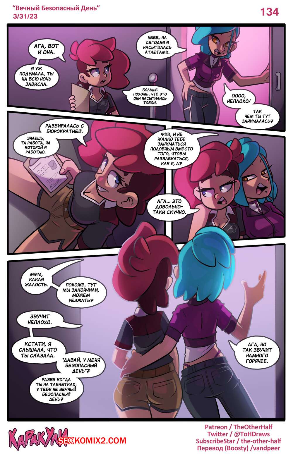 Порно комикс Каракули. Часть 3. Scrawled Горячие красотки продолжают веселиться. Они раздеваются и ласкают друг дружку, после чего занимаются страстной еблей, получая огромное удовольствие и оргазмы.
