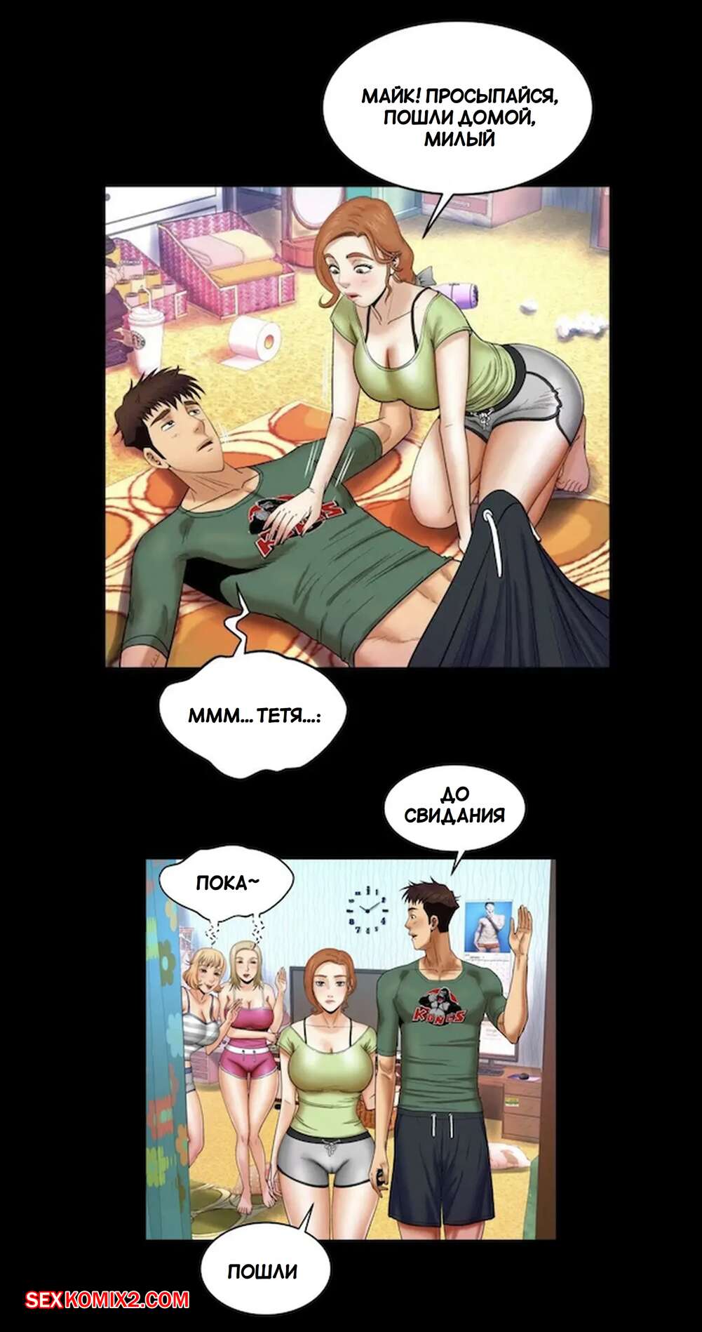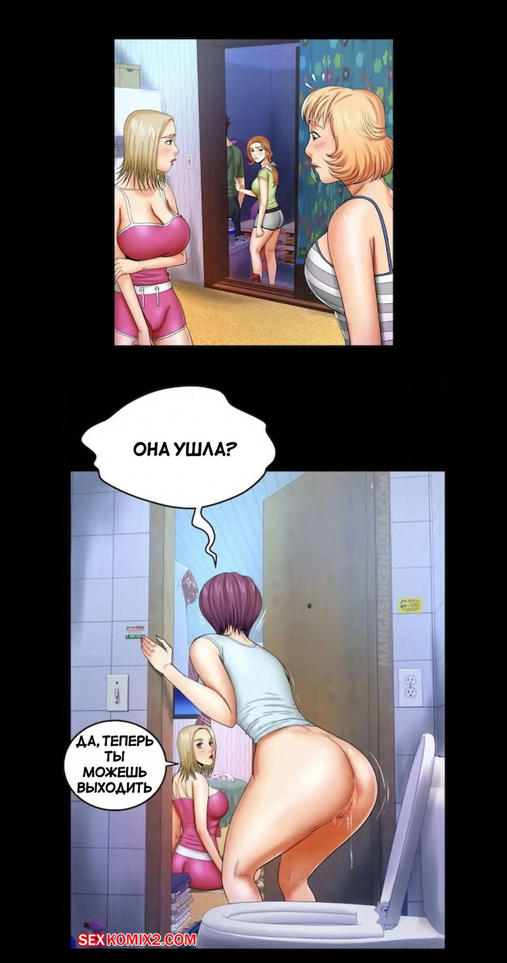 Порно комикс Моя тетя. Без цензуры. Часть 12. My Aunt. Toomics Две горячие красотки возбудились, увидев большой хуй своего дружка. Девушки разделись перед парнем и дали ему себя хорошенько выебать, получив огромное удовольствие.