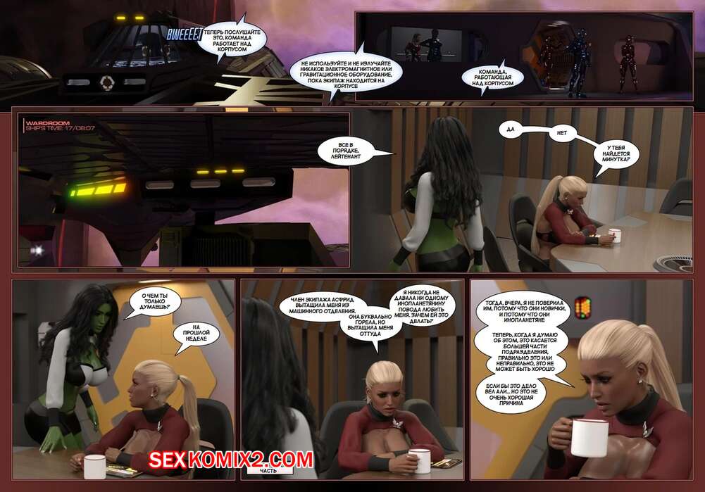 Порно комикс Пираты Угольного Мешка. Часть 23. Pirates of the Coal Sack. DangerousLines. Горячие красотки были очень возбуждены и решили повеселиться со своими дружками. Они разделись и отсосали большие хуи парней, после чего дали им себя хорошенько выебать.