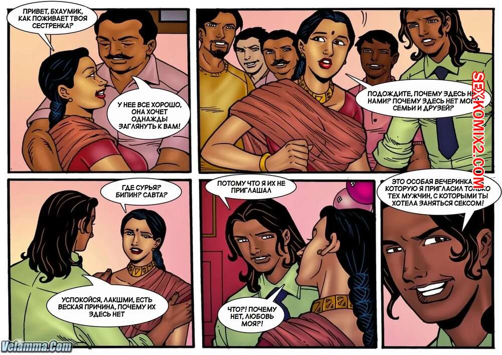 Порно комикс Сны Веламмы. Часть 9. Velamma Dreams. Kirtu Сисястая брюнетка милфа была очень возбуждена и решила повеселиться со своими дружками. Девушка разделась и отсосала большие хуи парней, после чего дала им себя выебать.