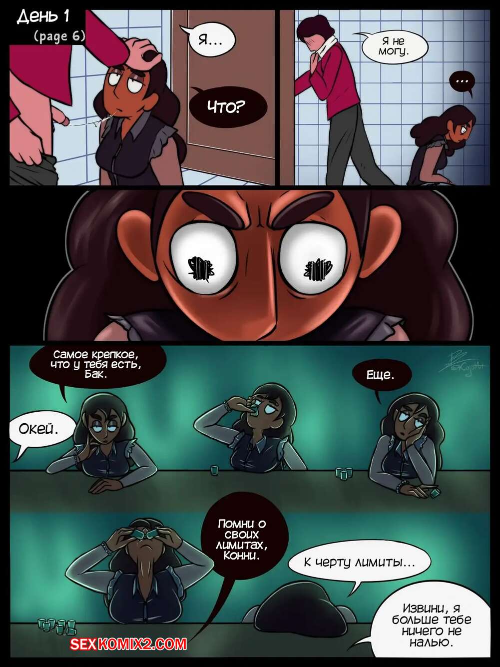 Порно комикс Вселенная Стивена. Одня неделя, чтобы украсть меня. One Week to Steal Me. Kojot Стивен на неделю уехал в лагерь и Конни мечтает о том, чтобы ее украли у ее парня. Девушка надела сексуальный наряд и отправилась на вечеринку, где уединилась с парнем, чтобы отсосать его член.