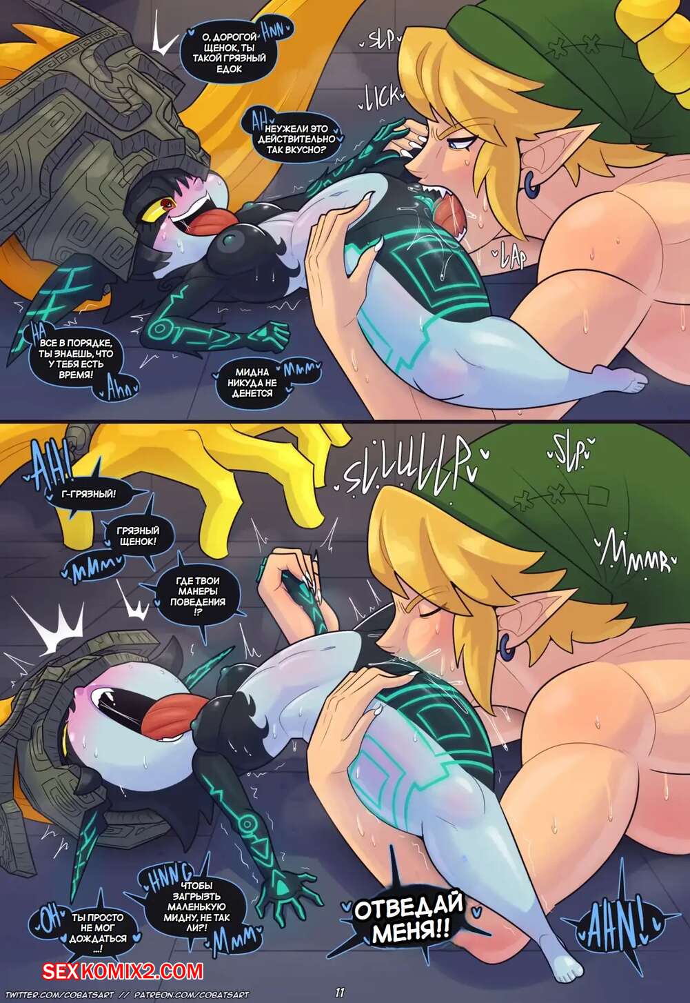 Порно комикс The Legend Of Midna. Сумеречная толщина. Twilight Thiccness. Cobatsart Девушка была очень возбуждена и решила повеселиться со своим дружком. Она разделась и стала сосать большой хуй парня, после чего дала ему выебать свою пизденку.