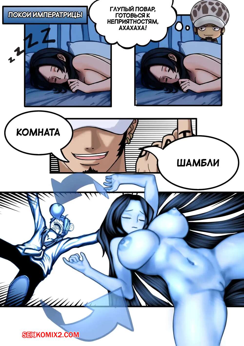 Порно комикс Ван Пис. Мечта об удовольствии. Dream of Pleasure. TSFSingularity. Брюнетка с огромными сиськами хочет трахаться. Ей сниться секси сон, но и реальности ее тоже выебали.