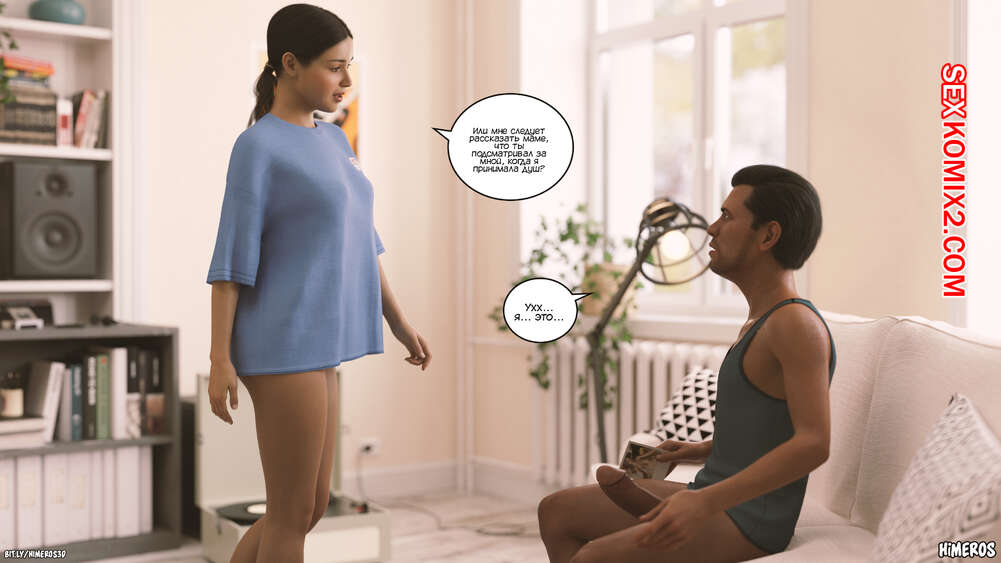 Порно комикс Любовь, пузыри. Часть 1. Love, Bubbles. Himeros3D Горячая брюнетка искала свой плеер и отправилась в комнату к Мерту, чтобы искать его. Войдя в комнату, девушка застала парня за дрочкой, от чего он сильно разозлился..
