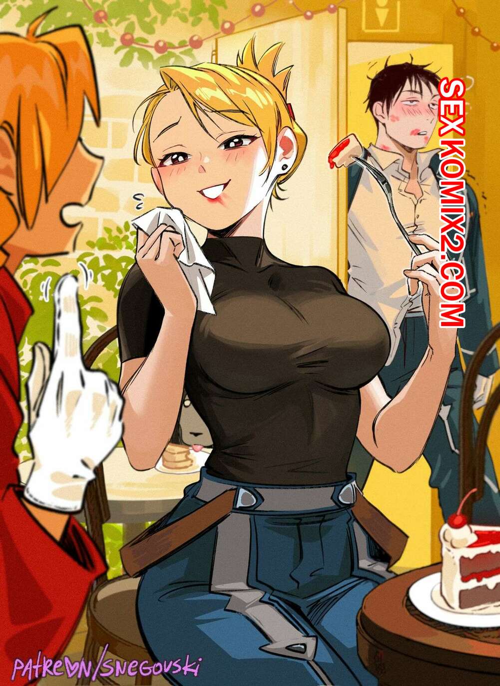 Порно комикс Roy Riza Cake. Snegovski Блондиночка встретила своего дружка и позвала его уединиться. Красотка раздвинула ножки и дала парню себя хорошенько выебать, получив от этого огромное удовольствие.