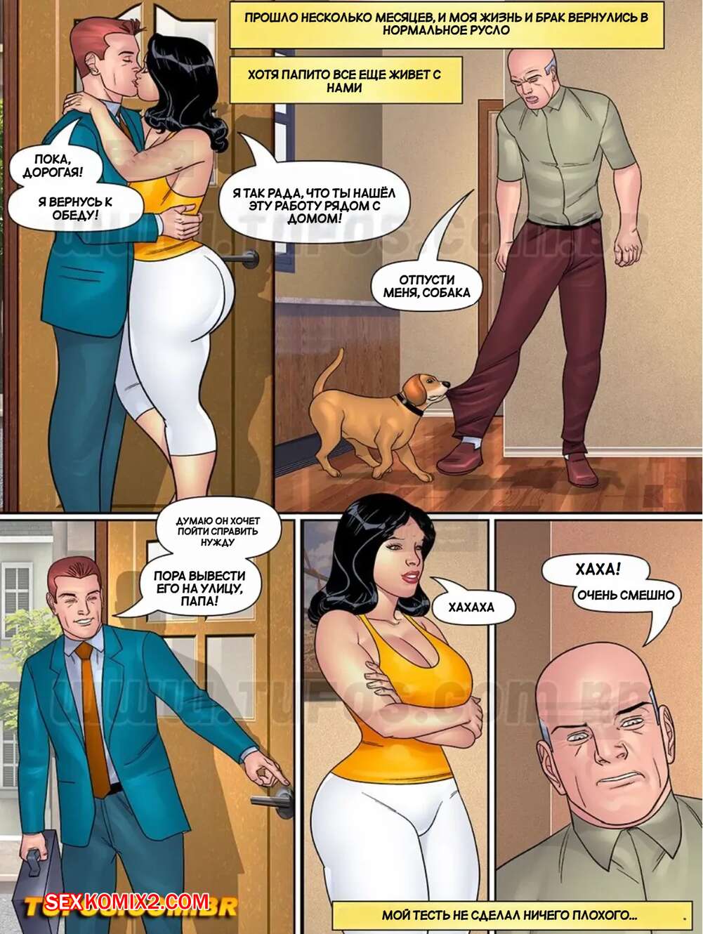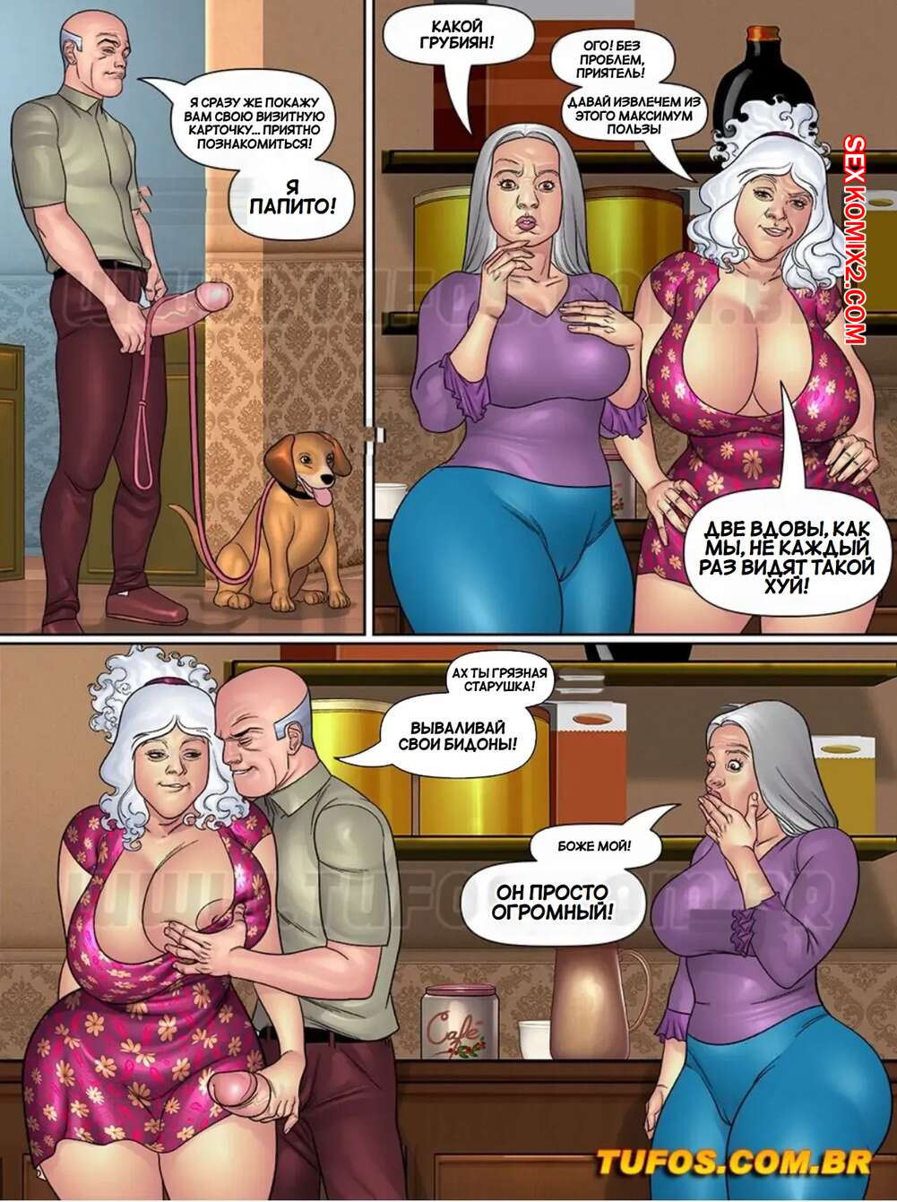 Порно комикс Папочка. Тесть извращенец. Часть 8. Щенки, девственницы и много другое. Tufos. Озабоченный мужчина прогуливая по городу, пытался склеить молодых девушек. Но удача ему улыбнулась с двумя зрелыми милфами.