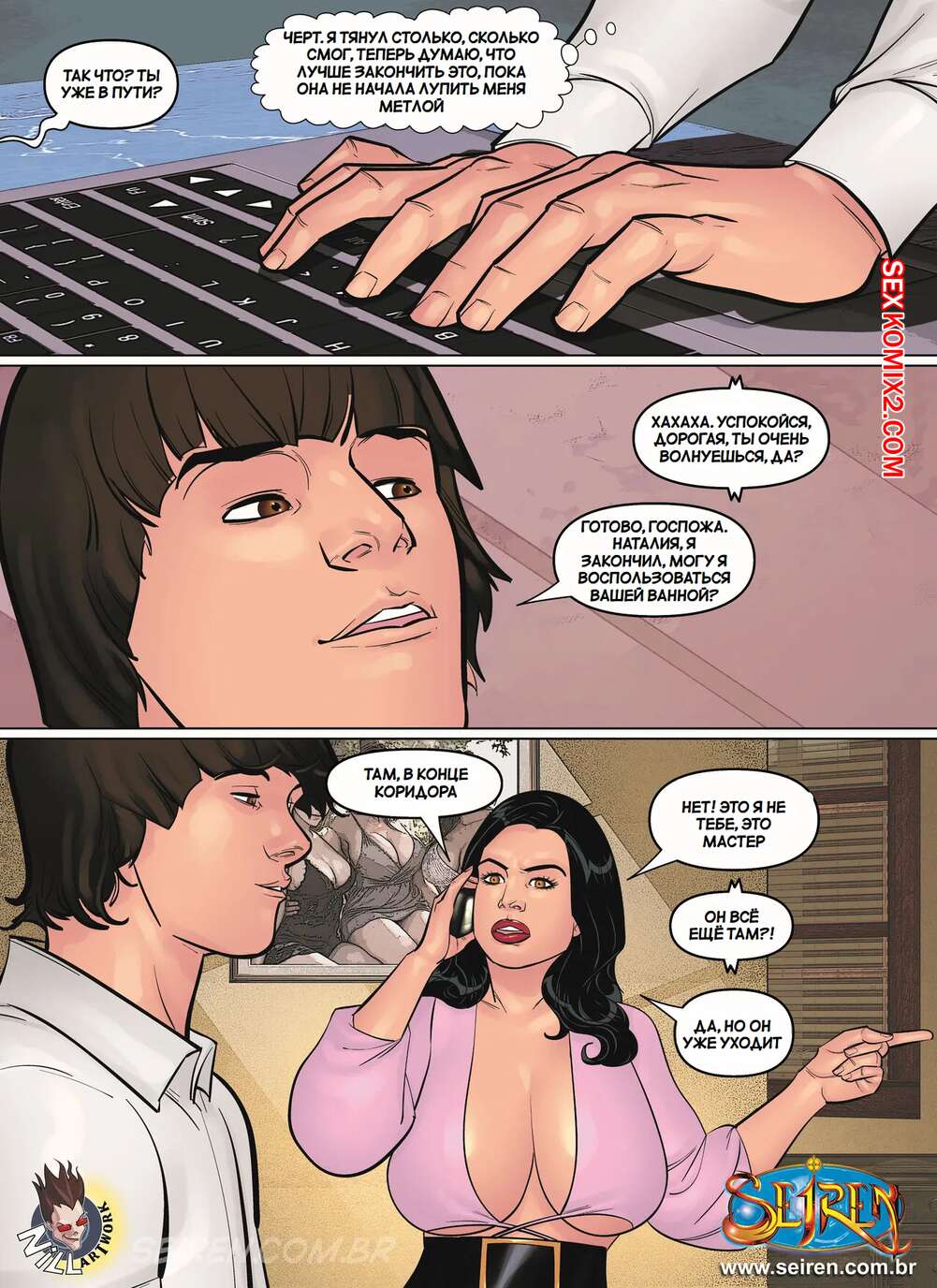 Порно комикс Миссис Наталисиус. Mrs. Natalicious. Seiren. Молодой парень пришел домой к горячей милфе и она решила с ним развлечься. Красотка разделась и отсосала большой хуй парня, после чего дала ему себя хорошенько выебать.