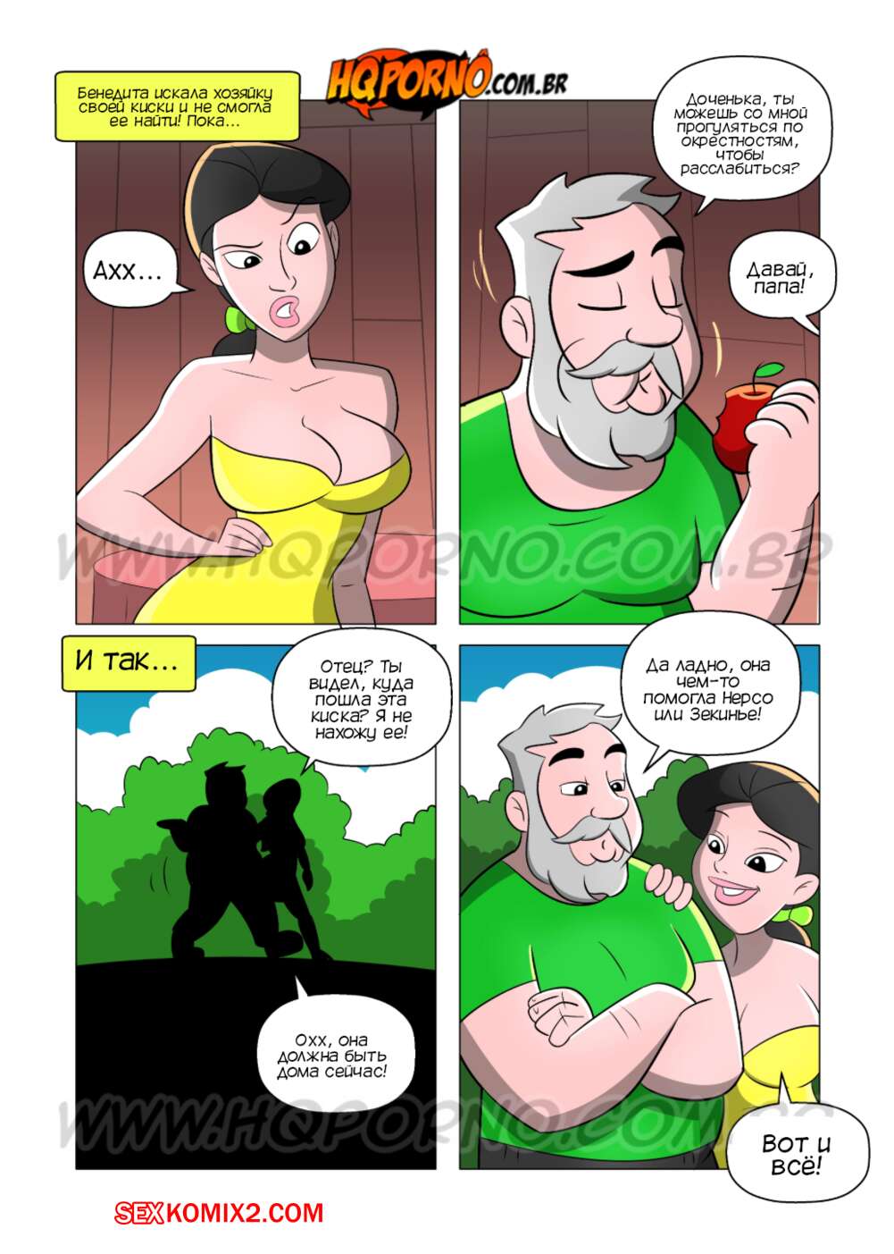 Порно комикс Фелисбинос. Часть 10. Os Felisbinos. HQporno Молодая девушка отправилась на прогулку со своим папочкой и они оба сильно возбудились. Девушка разделась и стала сосать большой хуй отца, после чего дала ему себя выебать во все дырочки.