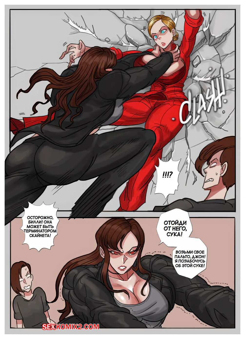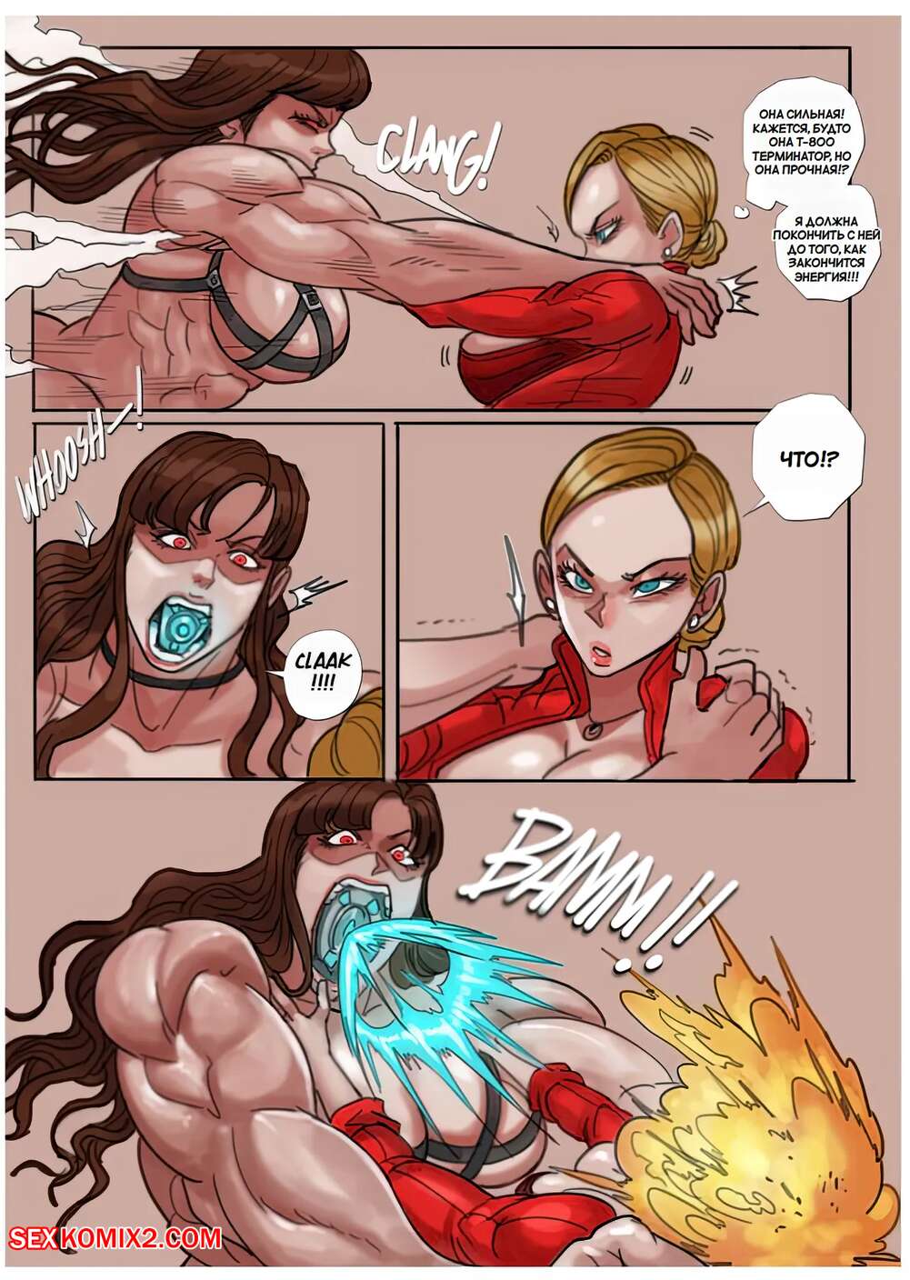 Порно комикс Терминатор. Тотальная война. All Out War. Tora Tora. Две девушки терминатора вступили в сражение и у одной из них вырос член. Она схватила противницу и раздела ее, после чего хорошенько выебала ее пизденку, повергнув соперницу.