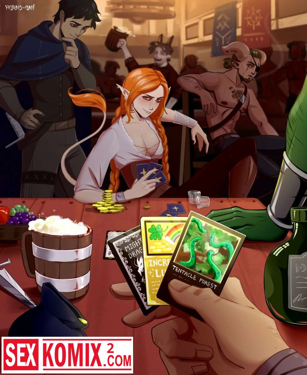 Порно комикс В карты на раздевание. Рыжеволоса девушка забрела в бар и ввязалась в карточную игру. Она поставила на кон свою пизду и проиграла. Теперь парни трахают её толпой.